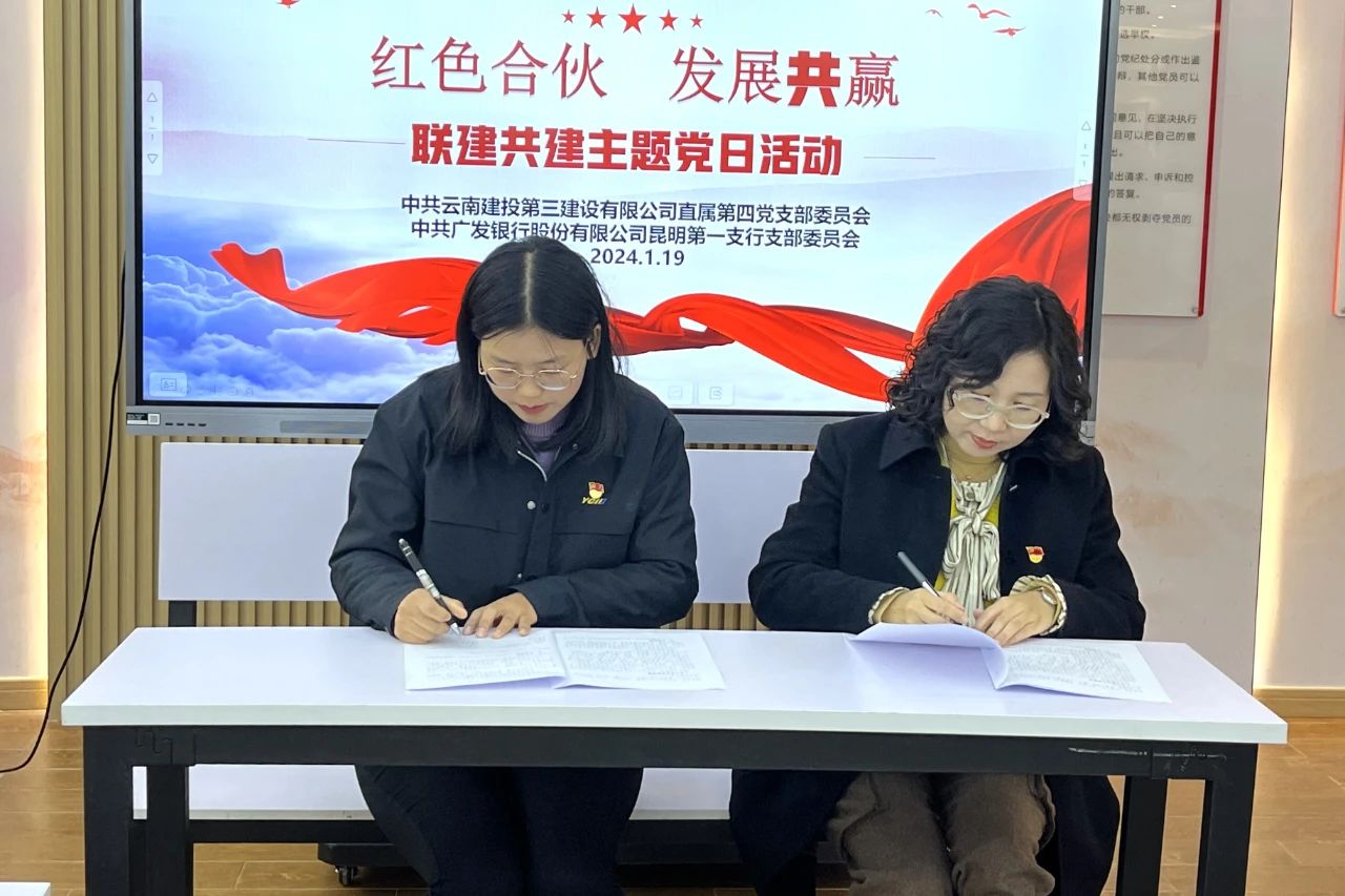 近日,公司直屬第四黨支部與廣發(fā)銀行昆明第一支行黨支部在公司黨建活動室聯(lián)合開展“紅色合伙,發(fā)展共建”主題黨日活動,與中信銀行昆明北辰支行在公司大會議室聯(lián)合開展“互融互促開新篇”新春送福活動。