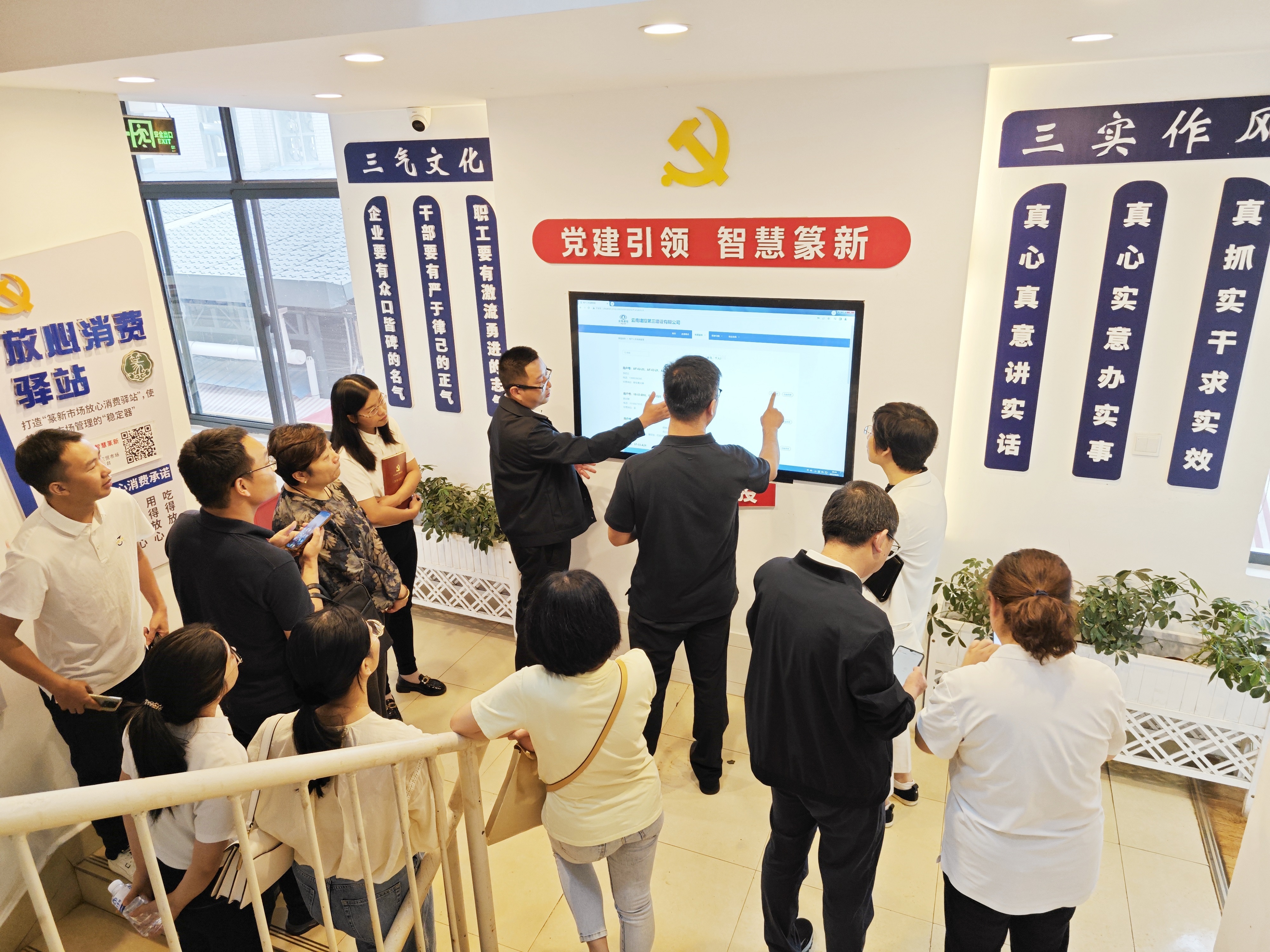 直屬第四黨支部組織觀看了集團(tuán)及公司宣傳片,介紹了公司近年納稅情況及開展的稅務(wù)管理工作。資產(chǎn)運(yùn)營管理部黨支部組織參觀了篆新農(nóng)貿(mào)市場,結(jié)合篆新“12315”特色黨建品牌創(chuàng)建經(jīng)驗(yàn)進(jìn)行交流。