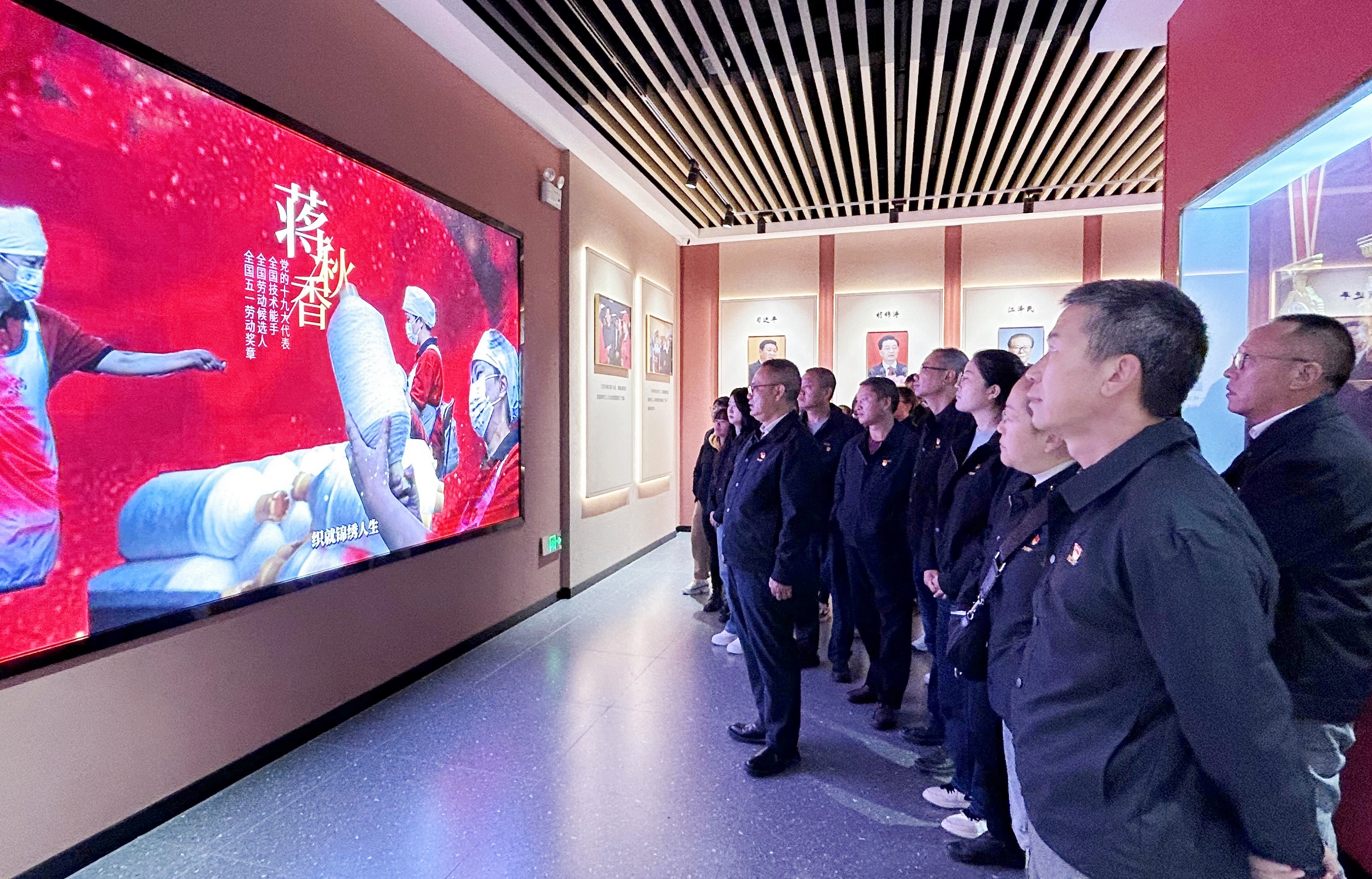 參觀開始前,各黨支部共同為10月過政治生日的3位黨員頒發(fā)了政治生日賀卡,并組織所有參觀的黨員重溫了入黨誓詞。隨后,在講解員的帶領(lǐng)下,大家共同回顧了中國工運(yùn)史、昆明工運(yùn)史、昆明現(xiàn)代工業(yè)發(fā)展歷程等,在各專題展區(qū)前駐足觀看來自一線職工的辛勤勞動(dòng)成果,聆聽歷屆勞模工匠的感人事跡,借助聲、光、電等現(xiàn)代展陳手段,與勞模工匠們展開了一場“跨時(shí)空”對話?!翱矗夷棠淌?964年的昆明市五好先進(jìn),沒想到還能查到她的資料?!痹趧谀?、先進(jìn)電子檔案臺前,黨員高建欣查到自己親人的信息時(shí),十分高興。“我家老人的名字也查到了?!秉h員葉忠慶也高興地說到。