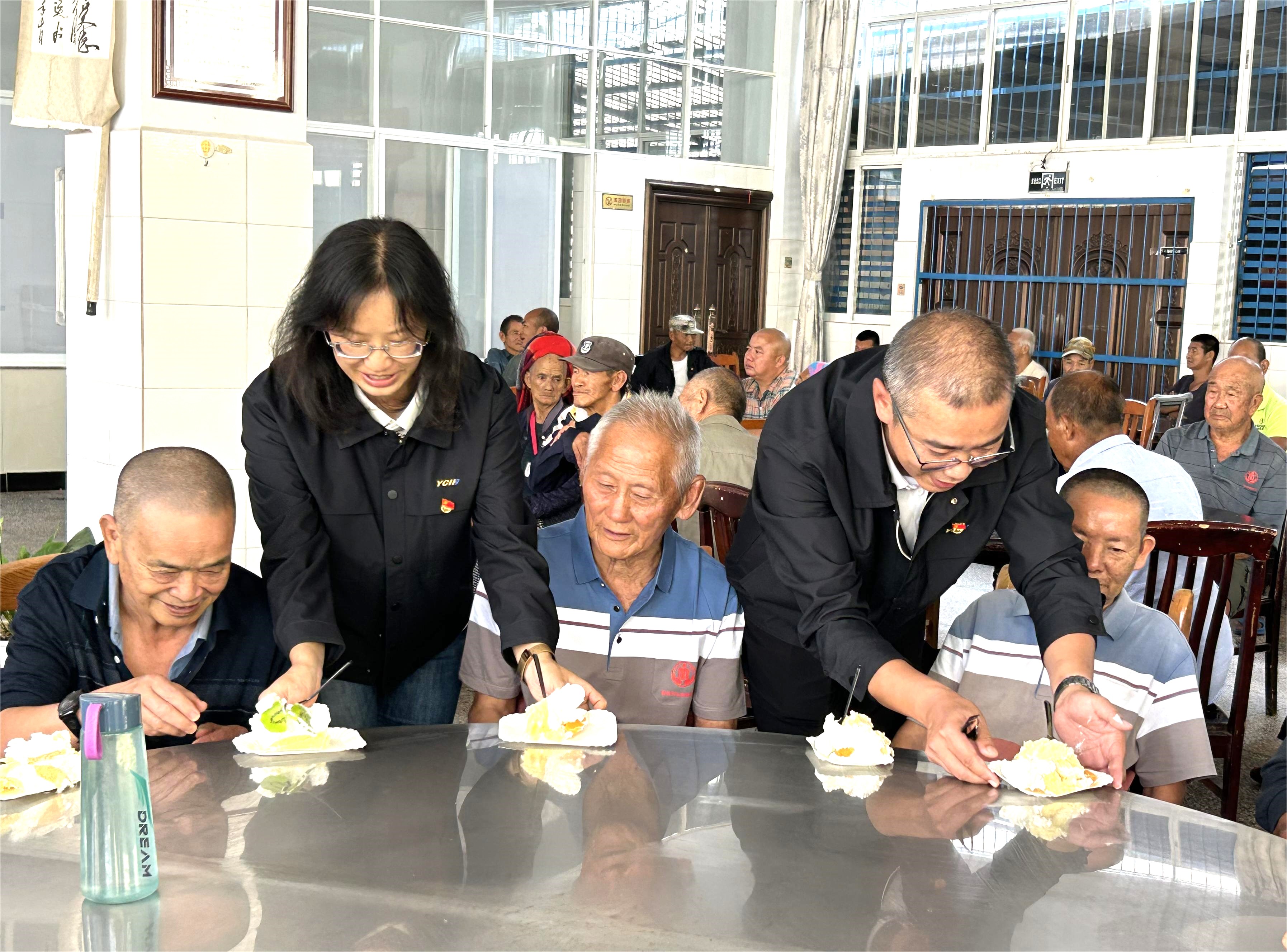 隨后,黨支部為老人們送去了蛋糕、保溫杯等慰問(wèn)品,各位黨員與老人們聊天、拉家常,為他們的生活起居及健康保養(yǎng)提供建議,老人們臉上洋溢著開(kāi)心的笑容。