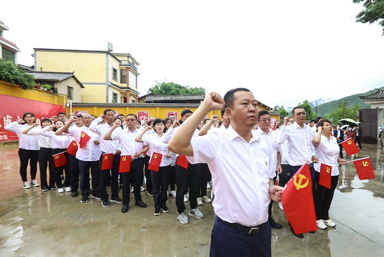 “我志愿加入中國(guó)共產(chǎn)黨……”在公司黨委書記、董事長(zhǎng)吳勇帶領(lǐng)下,70余名黨員整齊列隊(duì),面對(duì)鮮紅的黨旗,莊嚴(yán)宣誓。隨后,列隊(duì)排成“100”的形狀,以慶祝建黨100周年。