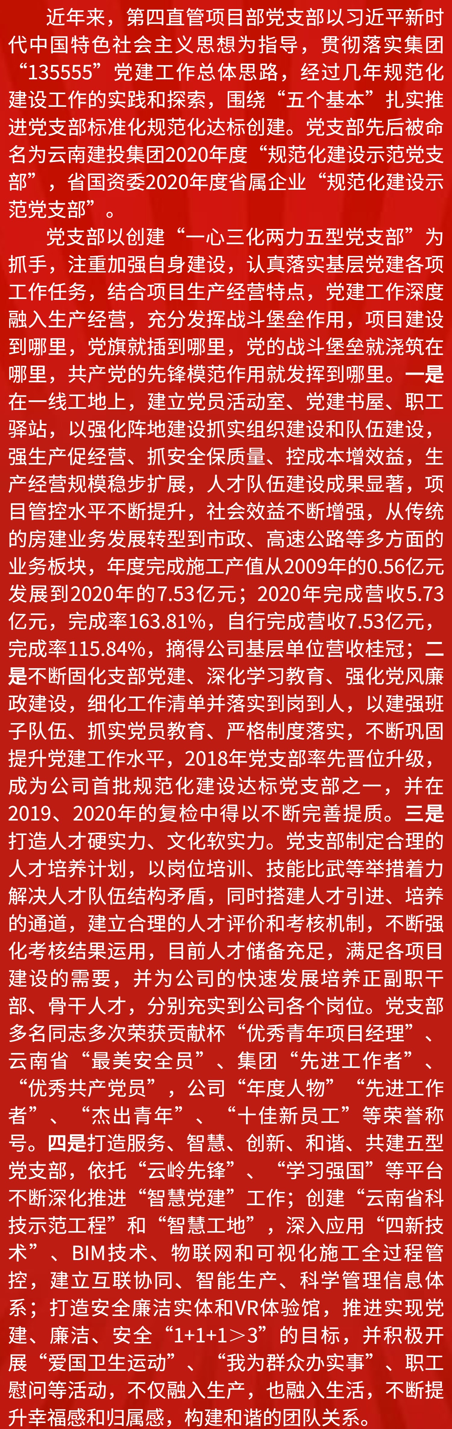 公司第四直管項目部黨支部獲2020年度省級“規(guī)范建設示范黨支部”命名