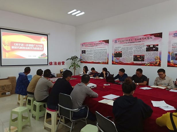 10月20日上午,公司第十一直管部黨支部在巧家公安局項(xiàng)目組織了“擔(dān)當(dāng)作為”主題教育學(xué)習(xí)活動(dòng),認(rèn)真學(xué)習(xí)《關(guān)于進(jìn)一步激勵(lì)廣大干部新時(shí)代新?lián)?dāng)新作為的意見》文件精神,同時(shí),溫習(xí)了施工項(xiàng)目管理常識(shí)。會(huì)上,第十一直管部黨支部書記、直管部副經(jīng)理王躍強(qiáng)在學(xué)習(xí)中指出,項(xiàng)目人員一要以“12355”發(fā)展戰(zhàn)略為引領(lǐng),促進(jìn)跨越發(fā)展;二要緊密結(jié)...