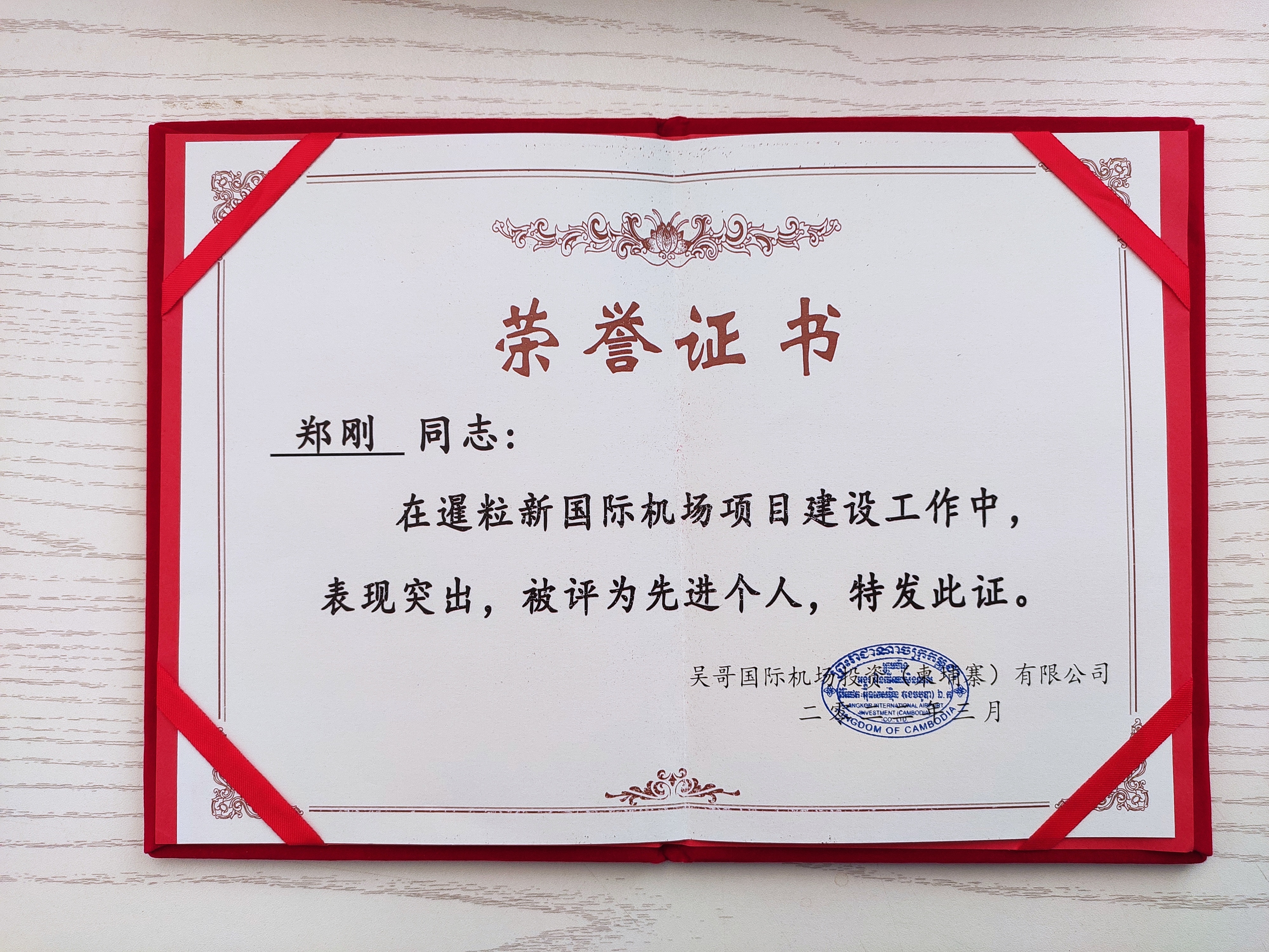鄭剛同志于2020年12月赴柬埔寨暹粒新國(guó)際機(jī)場(chǎng)項(xiàng)目,駐守國(guó)外項(xiàng)目一年有余。在項(xiàng)目開展過(guò)程中,認(rèn)真負(fù)責(zé),踏實(shí)能干,實(shí)時(shí)把握項(xiàng)目安全生產(chǎn)動(dòng)態(tài),及時(shí)解決相關(guān)問(wèn)題,推動(dòng)項(xiàng)目安全工作順利開展,起到了較好的先進(jìn)模范帶頭作用。