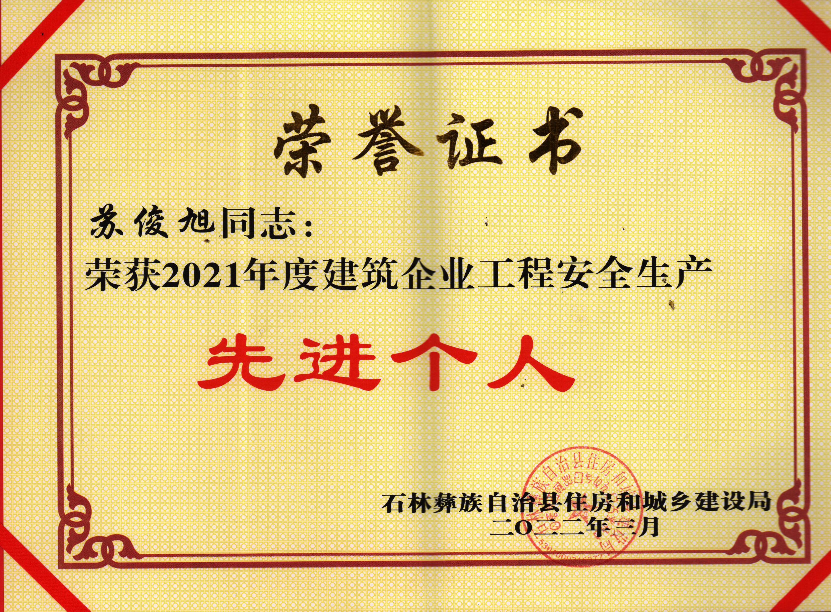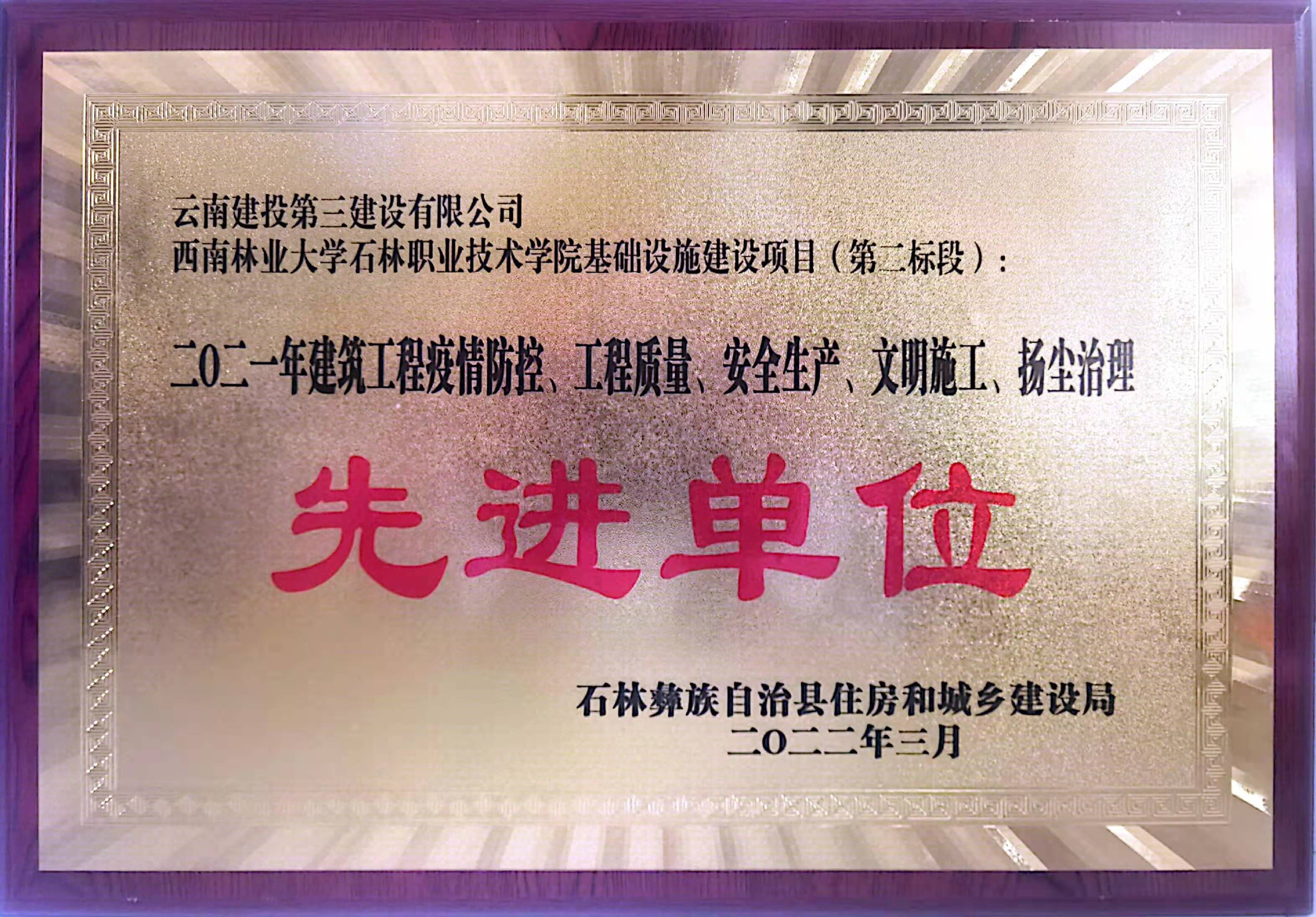 會(huì)上,萬(wàn)勇通報(bào)表彰石林縣建筑施工領(lǐng)域2021年度安全生產(chǎn)文明施工和揚(yáng)塵防控優(yōu)秀單位及優(yōu)秀先進(jìn)個(gè)人。其中由第三項(xiàng)目經(jīng)理部承建的西南林業(yè)大學(xué)石林職業(yè)技術(shù)學(xué)院基礎(chǔ)設(shè)施建設(shè)項(xiàng)目(第二標(biāo)段)榮獲2021年建筑工程疫情防控、工程質(zhì)量、安全生產(chǎn)、文明施工、揚(yáng)塵治理先進(jìn)單位,鄧仕貴榮獲2021年度昆明市建筑企業(yè)優(yōu)秀項(xiàng)目經(jīng)理,李明榮獲2021年度建筑企業(yè)優(yōu)秀項(xiàng)目經(jīng)理,蘇俊旭和趙紫峰榮獲2021年度建筑企業(yè)工程安全生產(chǎn)先進(jìn)個(gè)人獎(jiǎng)。