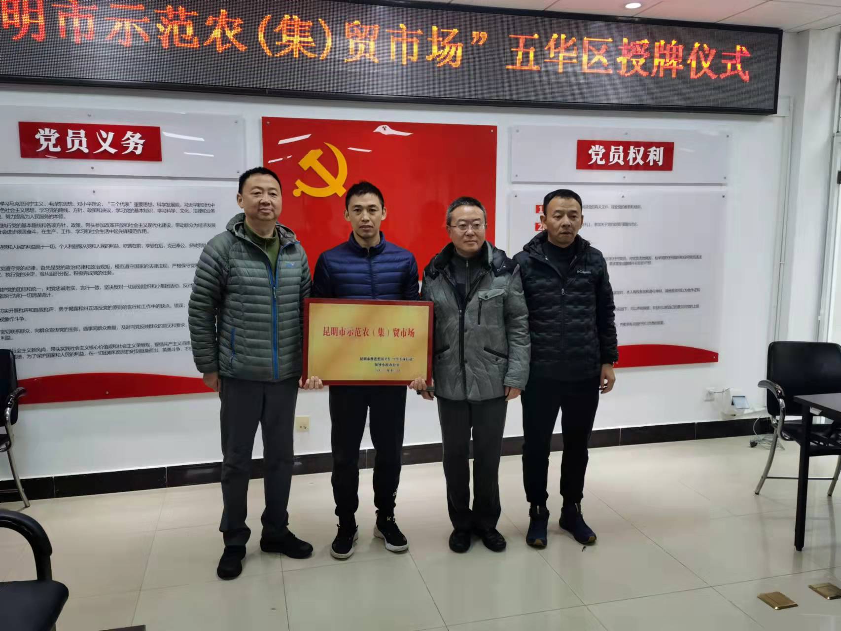 從今年九月份開始,經(jīng)過申報、審核、評估等一系列工作,由昆明市推進(jìn)愛國衛(wèi)生“7個專項行動”領(lǐng)導(dǎo)小組辦公室,從昆明市各縣(市)區(qū)人民政府規(guī)劃建設(shè)的室內(nèi)市場、農(nóng)(集)貿(mào)市場中,評選出了8家農(nóng)(集)貿(mào)市場進(jìn)行示范市場授牌表彰,其中1家就是大觀篆新農(nóng)貿(mào)市場。