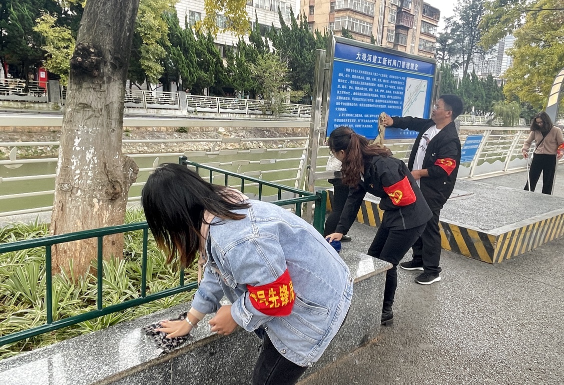 第一項(xiàng)目經(jīng)理部團(tuán)支部與第四直管項(xiàng)目部聯(lián)合開(kāi)展“喜迎COP15大會(huì),爭(zhēng)做文明青年”,多名團(tuán)員青年志愿者來(lái)到大觀河沿岸,積極清理周邊環(huán)境衛(wèi)生,以親身實(shí)踐參與到生態(tài)環(huán)保實(shí)踐志愿活動(dòng)中。