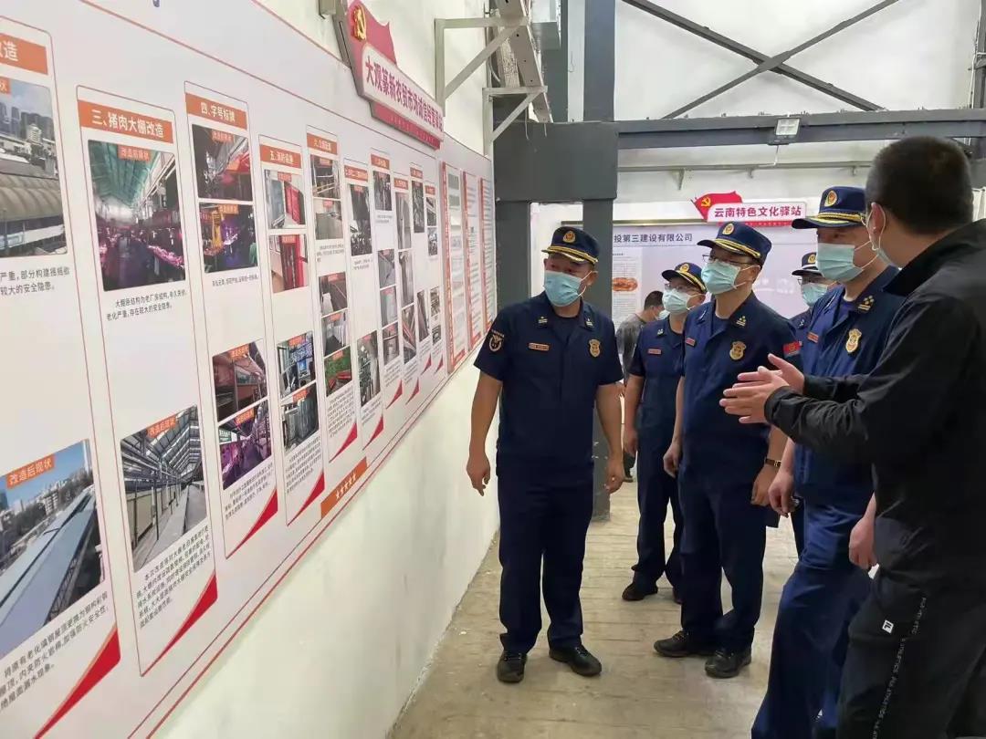 為全力以赴做好國慶及cop15大會期間市場消防安全工作。10月3日,云南省消防救援總隊總隊長趙文生一行到大觀篆新農(nóng)貿(mào)市場開展消防安全檢查。公司資產(chǎn)運營管理部、安全保衛(wèi)部負責人陪同檢查。