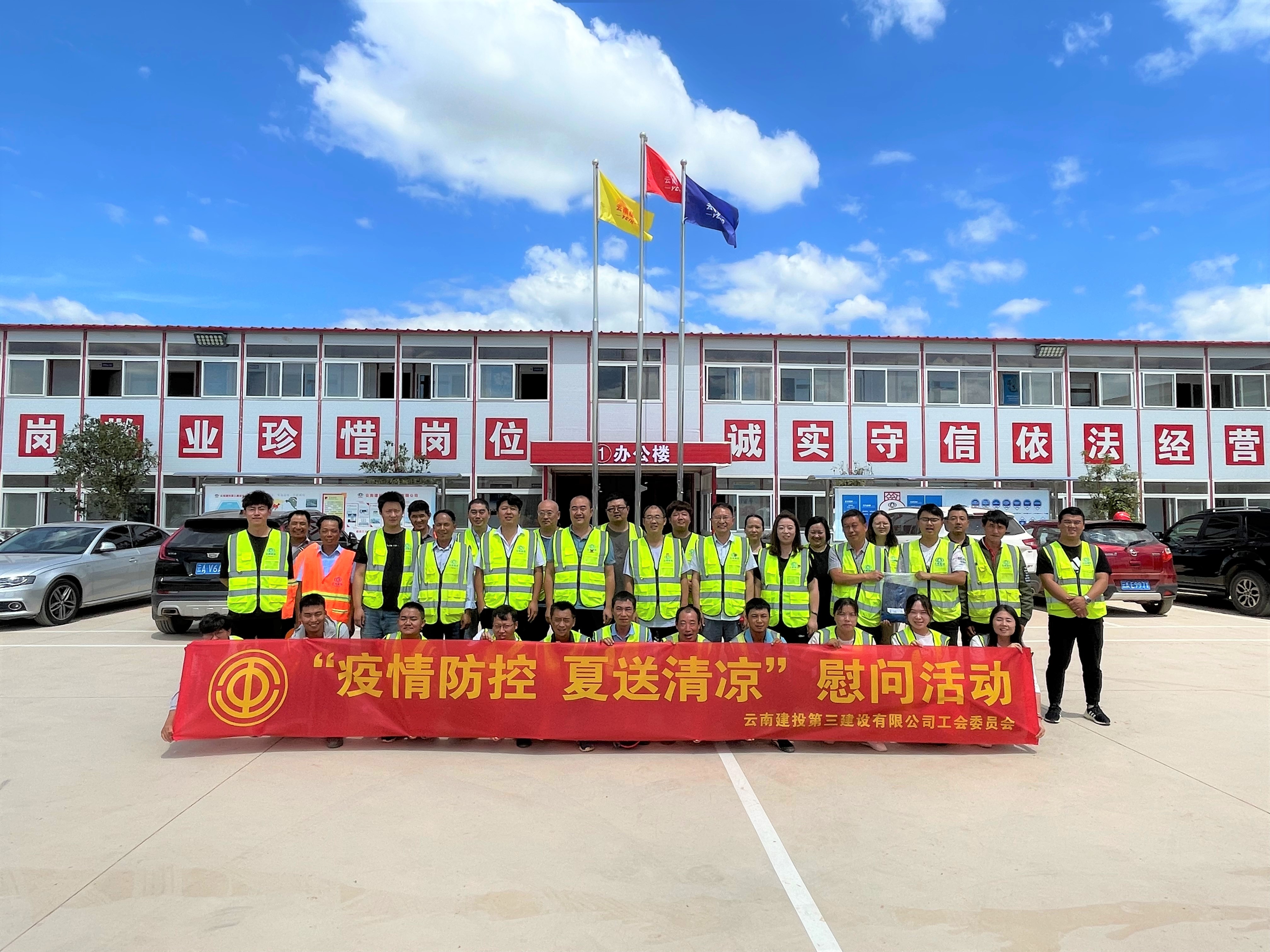 王長(zhǎng)錄代表公司領(lǐng)導(dǎo)班子為一線職工送上了夏日防暑降溫的慰問(wèn)品,叮囑大家要做好高溫防暑、疫情防控工作。最后,第三項(xiàng)目經(jīng)理部工會(huì)開(kāi)展了豐富多彩的互動(dòng)小游戲。