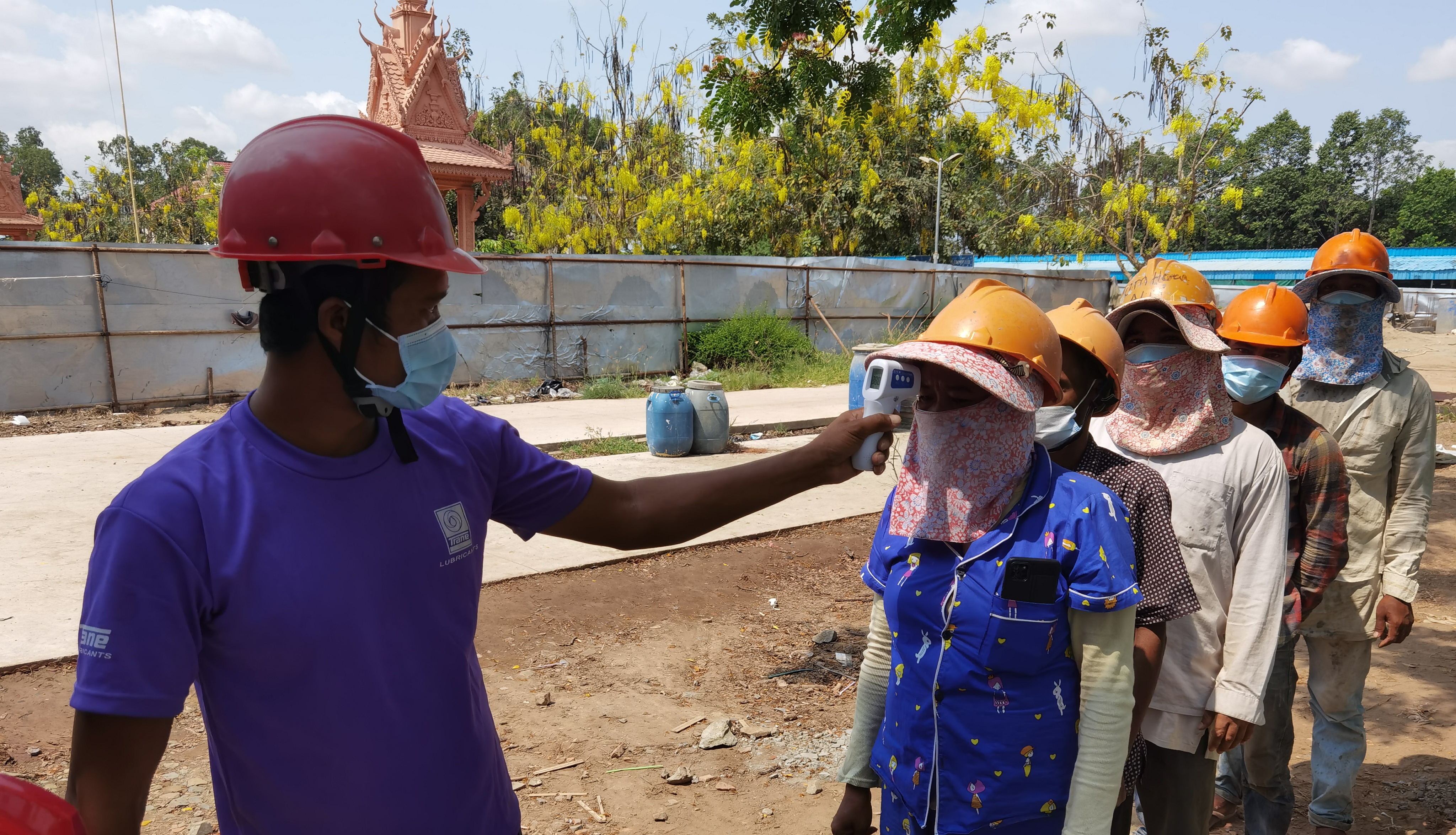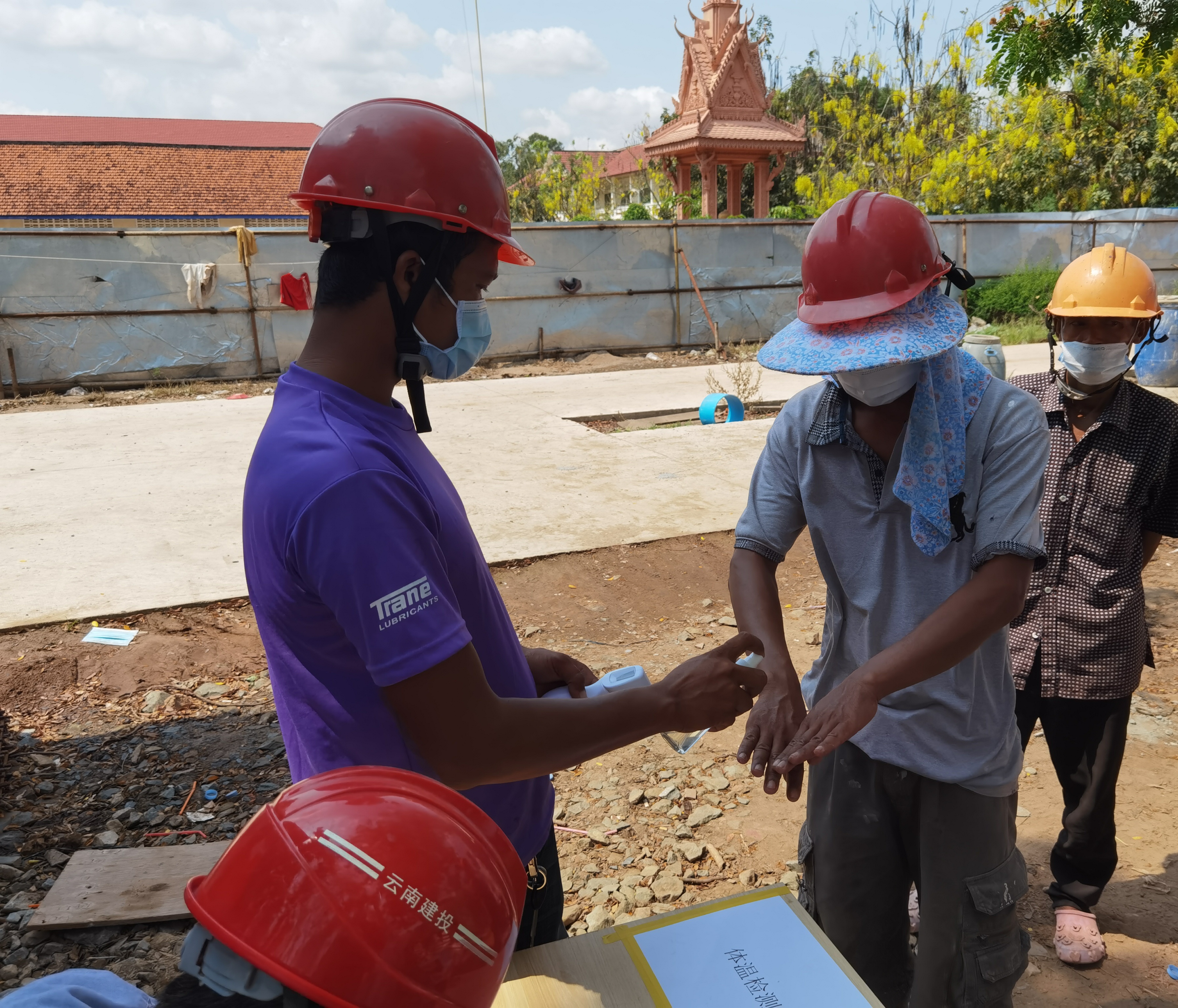截至4月1日,柬埔寨累計確診2477例,治愈1240例,現(xiàn)有確診患者1219例。位于柬埔寨甘丹省的援柬教育項目建設(shè)的A08、A10學(xué)校因被柬政府征設(shè)為新冠隔離觀察點,已暫停施工;A09學(xué)校處于低風(fēng)險區(qū)域,為了項目正常施工,項目部制定安全施工方案,實行全封閉管理,大力宣傳和普及防控知識,每日進行3次施工人員的體溫檢測,做到早發(fā)現(xiàn)、早報告、早隔離、早治療。位于暹粒省的吳哥機場項目目前正常施工中。柬埔寨地區(qū)項目部管理人員已報名接種疫苗,現(xiàn)排隊等待中。國際部也在疫情爆發(fā)的第一時間也集中采集藥品、口罩等防疫物資寄往柬埔寨項目,目前已經(jīng)到達(dá)項目點。