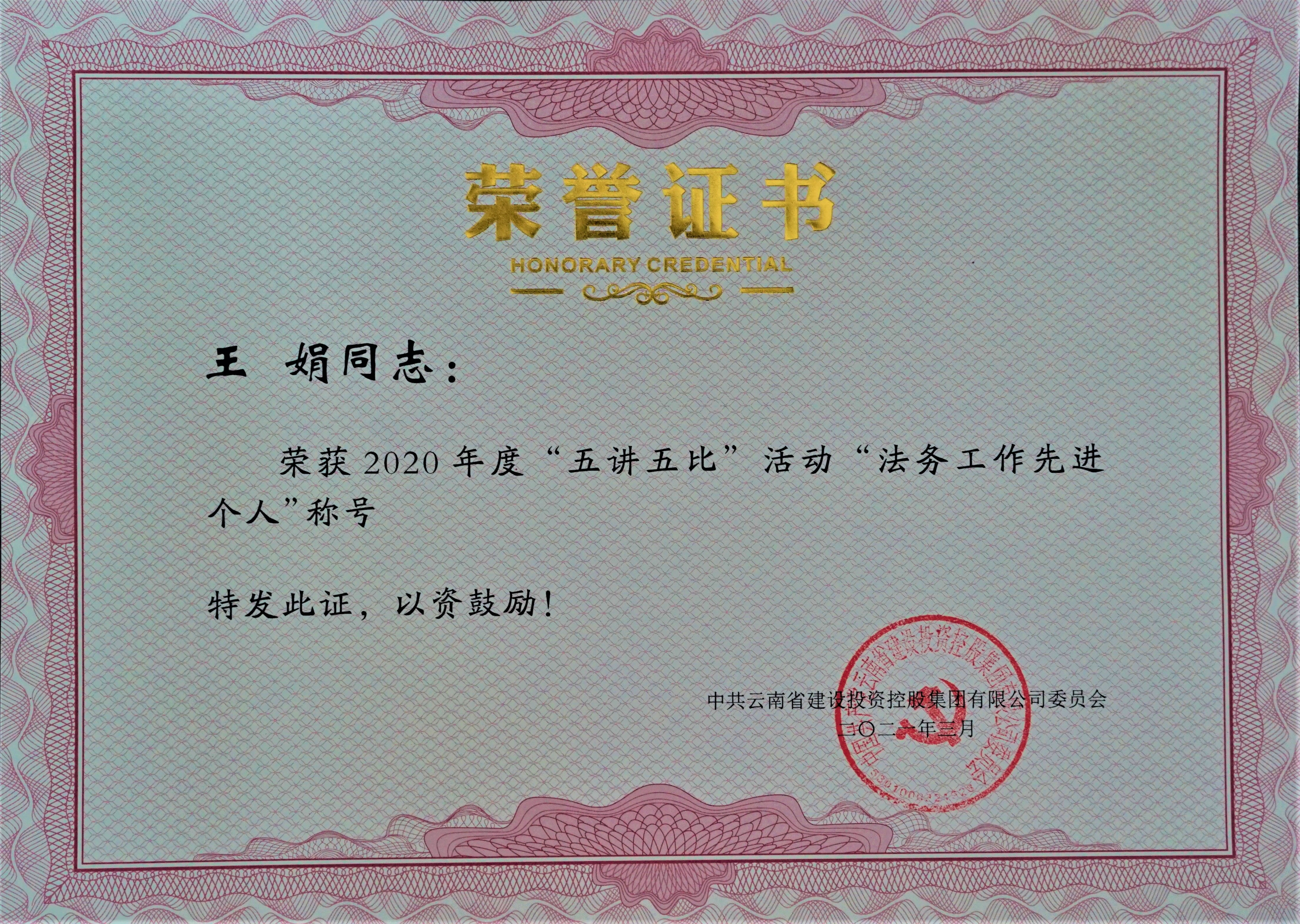 其中,公司榮獲“信息工作先進集體”稱號;金沙江白鶴灘水電站巧家縣移民房屋與市政工程總承包(EPC)項目、昆明醫(yī)科大學第一附屬醫(yī)院5號樓建設(shè)項目榮獲“最佳示范項目”稱號;公司法律事務(wù)部經(jīng)理王娟榮獲“法務(wù)工作先進個人”;黨委工作部業(yè)務(wù)主管謝超群榮獲“信息工作先進個人”。
