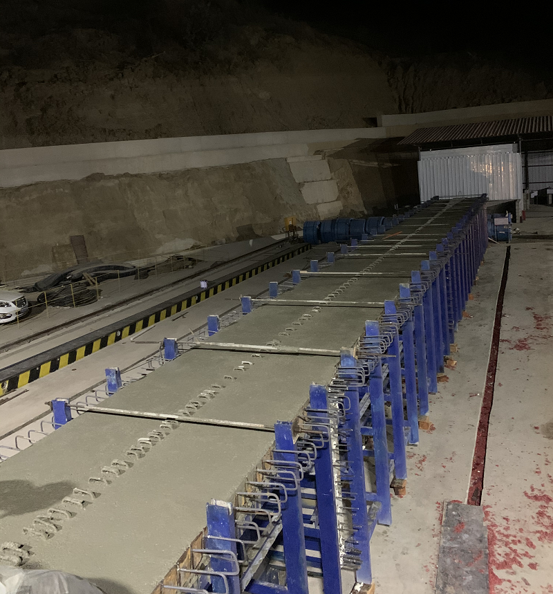 據(jù)悉,小石城特大橋T梁預(yù)制場(chǎng)分為鋼筋綁扎區(qū)、半成品存放區(qū)、預(yù)制區(qū)等。梁場(chǎng)規(guī)劃布置21個(gè)臺(tái)座,月生產(chǎn)能力40-45片,負(fù)責(zé)生產(chǎn)小石城特大橋485片30mT梁。