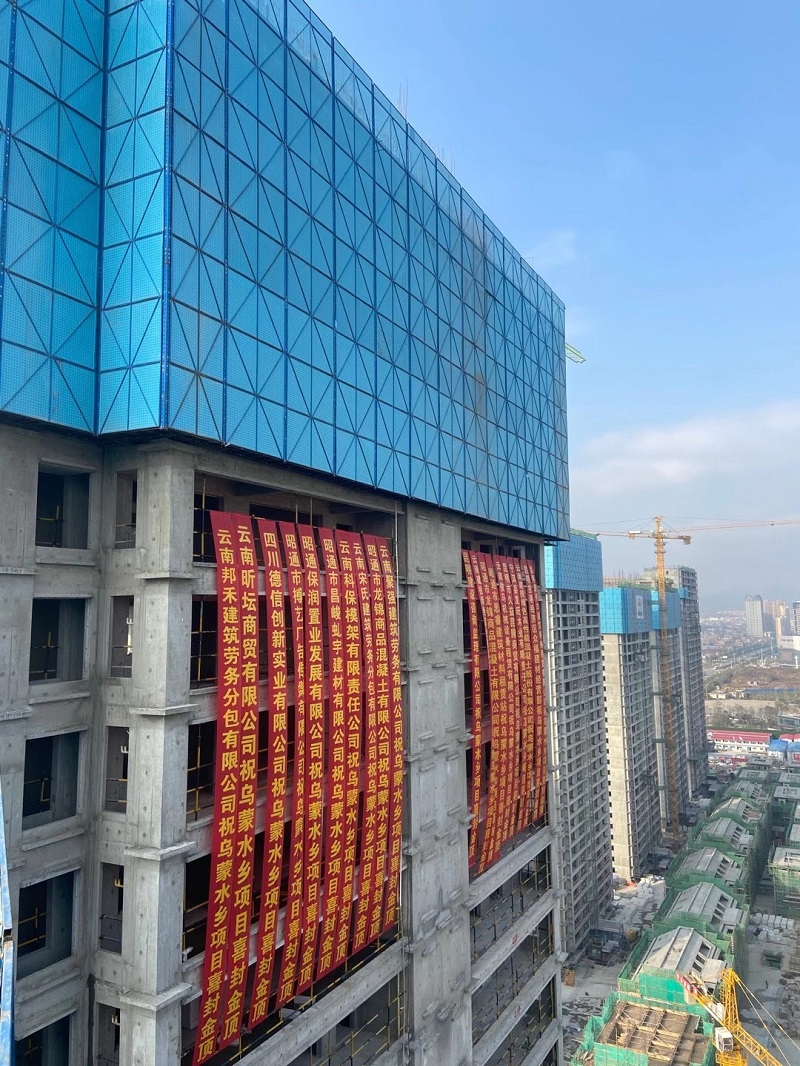 12月11日,伴隨著震耳欲聾的鞭炮聲,公司第一項(xiàng)目經(jīng)理部承建的昭通烏蒙水鄉(xiāng)項(xiàng)目(昭儲(chǔ)18-13號(hào)地塊)二標(biāo)段實(shí)現(xiàn)了首棟主體封頂?shù)哪繕?biāo)。