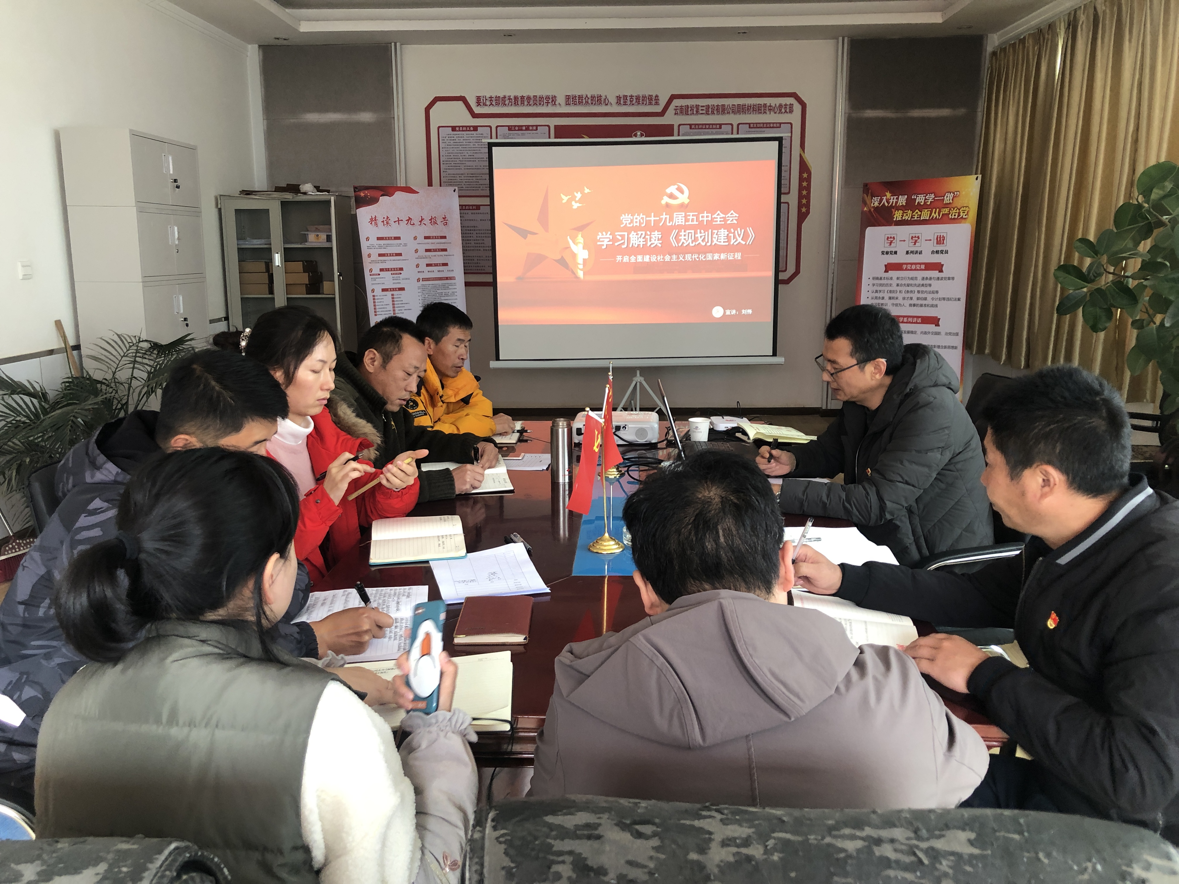 12月3日下午,公司總經(jīng)濟師劉懌以“解讀黨的十九屆五中全會《規(guī)劃建議》”為主題對黨的十九屆五中全會精神進行宣講,活動在周轉(zhuǎn)料租賃中心會議室進行,周轉(zhuǎn)材料租賃中心在昆干部職工參會學(xué)習(xí)。