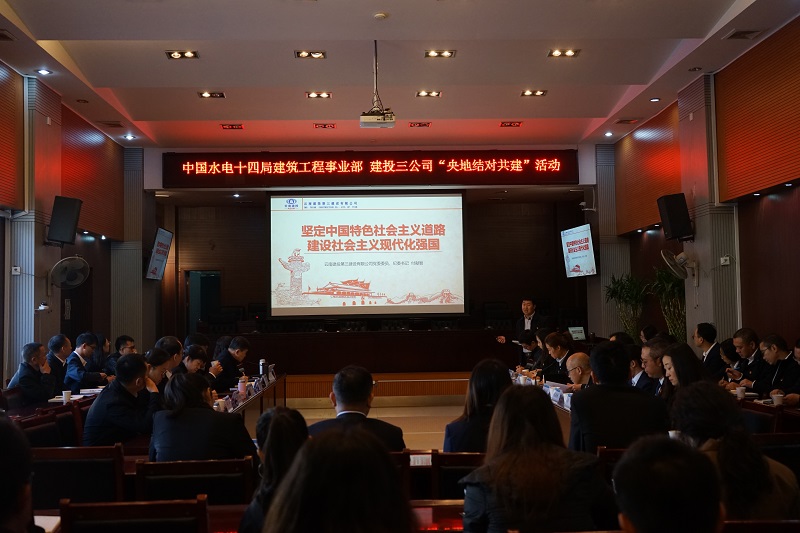 11月26日,三公司黨委與中國水電十四局建筑工程事業(yè)部黨委開展了“融入中心抓黨建·服務(wù)大局謀發(fā)展”主題黨日活動,本次活動在三公司機(jī)關(guān)大會議室舉行,十四局建筑工程事業(yè)部及三公司在昆領(lǐng)導(dǎo)班子出席會議,共54名黨員干部職工參加。