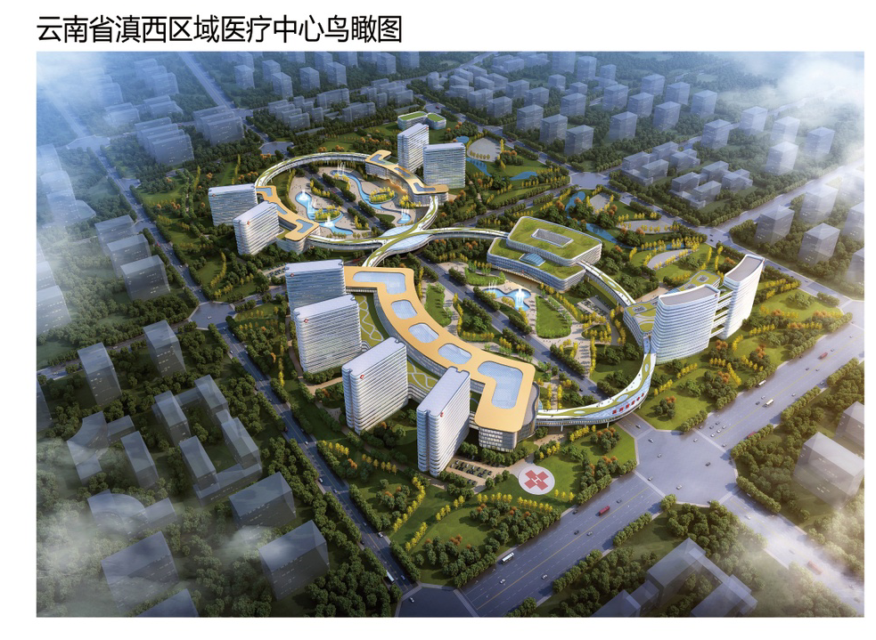 云南省滇西區(qū)域醫(yī)療中心以“立足大理,服務(wù)滇西,輻射川藏毗鄰地區(qū),面向南亞東南亞”為定位,將建設(shè)一個高端、智慧的最美區(qū)域醫(yī)療中心。項目位于大理市鳳儀鎮(zhèn)北部,用地北至關(guān)賓路,西至白塔河,南至大麗高速連接線,東至覽川路延長線,距大理古城18公里,距蒼山12公里,距洱海5公里,區(qū)位優(yōu)勢明顯,拓展空間大。規(guī)劃用地1072畝,擬建設(shè)5000床的醫(yī)療中心,涵蓋腫瘤、心血管、兒童、婦產(chǎn)、骨科和急救、醫(yī)技、檢驗檢測等??漆t(yī)療機構(gòu),總建筑面積87萬平方米,估算總投資71.03億元。項目建設(shè)工期為2020至2025年,根據(jù)土地現(xiàn)狀分期推進實施,先行啟動心血管、骨科2個??漆t(yī)院及急救、醫(yī)技、檢驗檢測3個共享中心建設(shè),再啟動實施腫瘤、兒童、婦產(chǎn)3個??漆t(yī)院。一期項目總建筑面積34萬平方米,概算投資28.64億元,中標(biāo)價為17.6億元,工期為600天。
