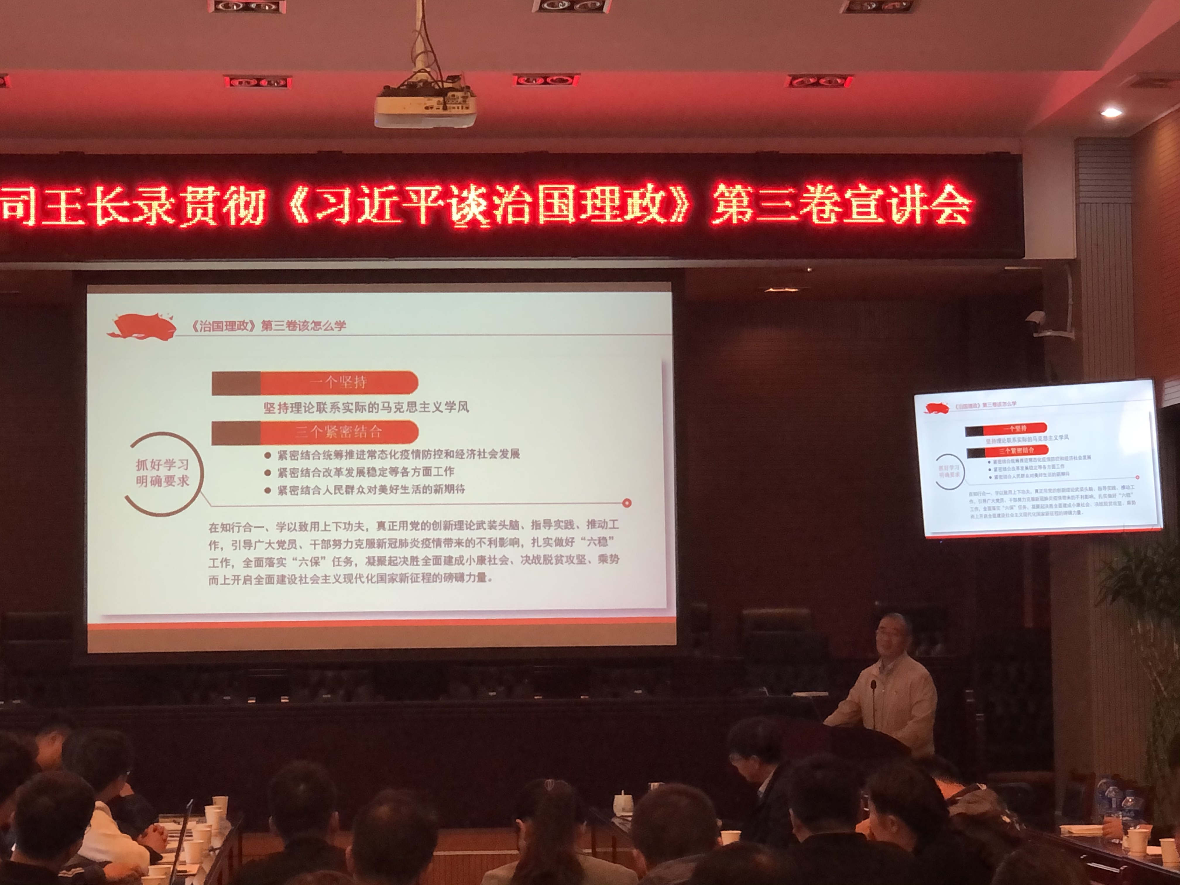 在題為“《習(xí)近平談治國(guó)理政》第三卷之推動(dòng)經(jīng)濟(jì)高質(zhì)量發(fā)展”宣講會(huì)上,王長(zhǎng)錄圍繞“意義”、“內(nèi)容”、“怎樣學(xué)習(xí)”、“推動(dòng)經(jīng)濟(jì)高質(zhì)量發(fā)展學(xué)習(xí)體會(huì)”等四個(gè)方面進(jìn)行詳細(xì)講解。他強(qiáng)調(diào),技術(shù)系統(tǒng)人員和黨員干部要以此次宣講為契機(jī),通過(guò)學(xué)習(xí),深刻把握其核心要義、精神實(shí)質(zhì)、實(shí)踐要求和蘊(yùn)含其中的馬克思主義立場(chǎng)觀點(diǎn)方法,做到學(xué)思用貫通、知信行統(tǒng)一,切實(shí)把學(xué)習(xí)成效轉(zhuǎn)化為推動(dòng)公司高質(zhì)量發(fā)展的持續(xù)動(dòng)力。