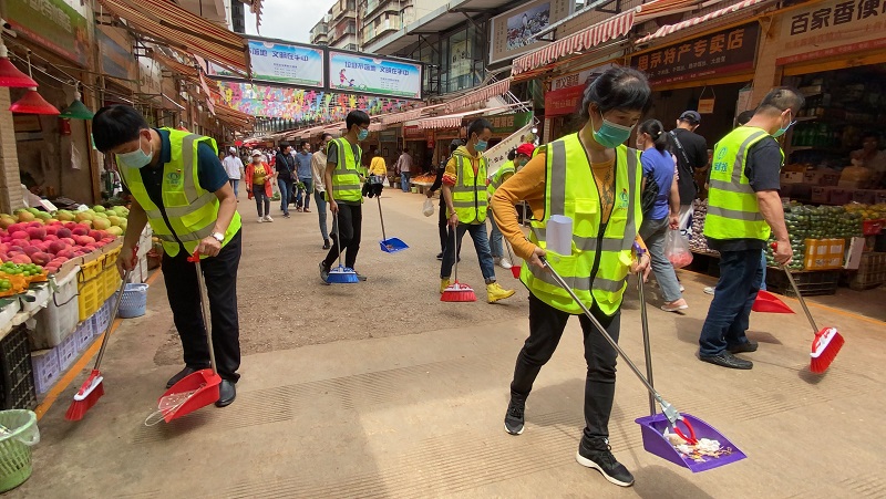 清掃活動中,志愿者紛紛戴上口罩,穿起反光背心,拿起掃帚、簸箕、鉗子、垃圾袋等工具,對建工新村118號、新聞路292號、大觀路36號、篆新農貿市場、新聞路、大觀路、大觀河、壹號廣場辦公區(qū)、環(huán)南新村等區(qū)域的衛(wèi)生死角、雜物、垃圾進行全面清理。