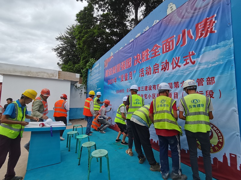 9月10日上午,第六直管項(xiàng)目部在元謀縣碧桂園住宅小區(qū)建設(shè)項(xiàng)目(二標(biāo)段)組織開展2020年“質(zhì)量月”活動(dòng)啟動(dòng)儀式。