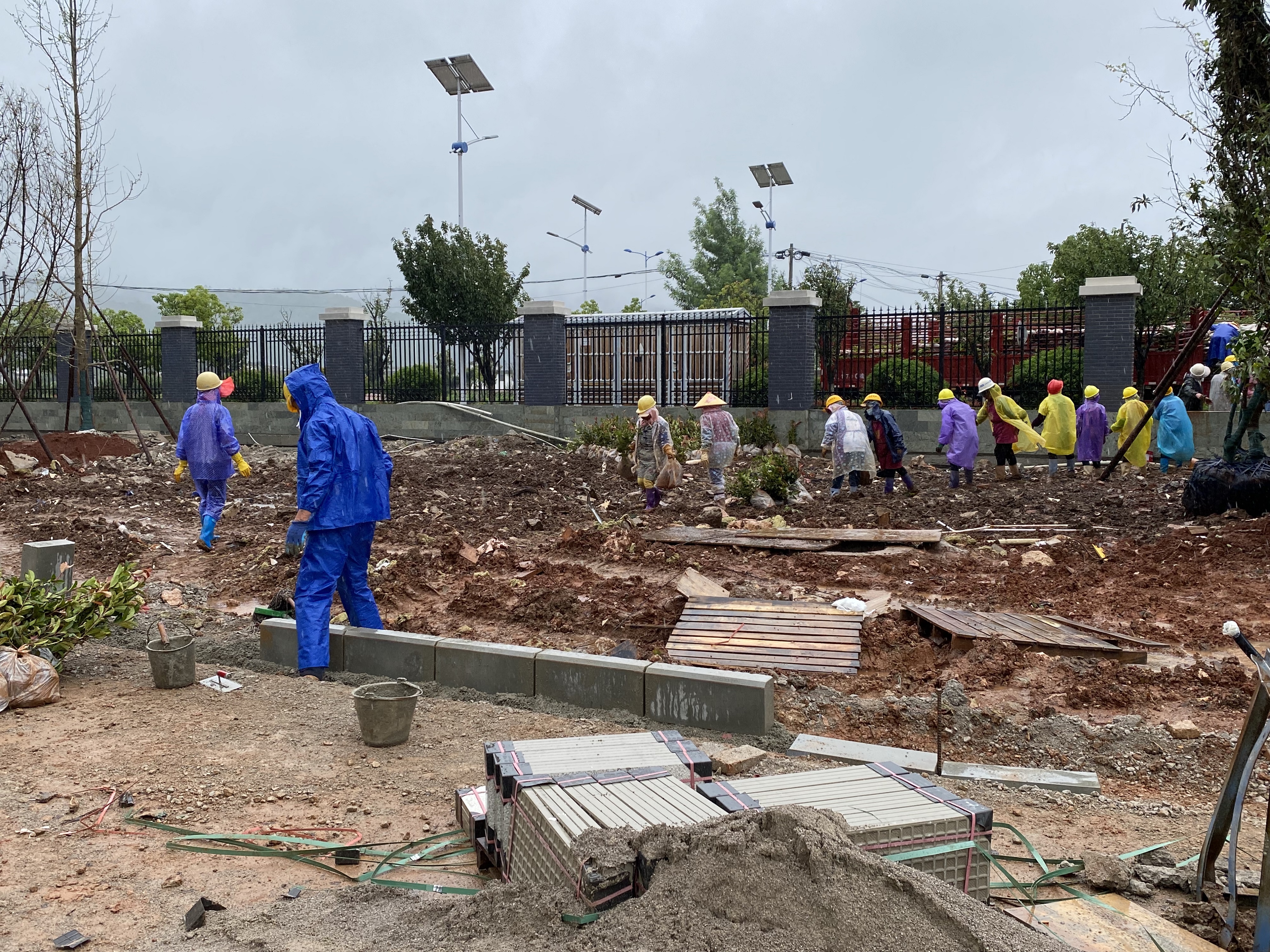 麗江師范高等??茖W?;A(chǔ)設施改擴建項目(A區(qū)、B區(qū))設計施工總承包建設項目是云南省“四個一百”建設項目、麗江2022年度市級重點建設項目,國慶期間,項目20名管理人員、65名工友堅守崗位,頂風冒雨進行綠化收尾以及衛(wèi)生清潔等工作,為最后的竣工驗收作準備,同時,為新中標的(C區(qū))項目作進場準備。