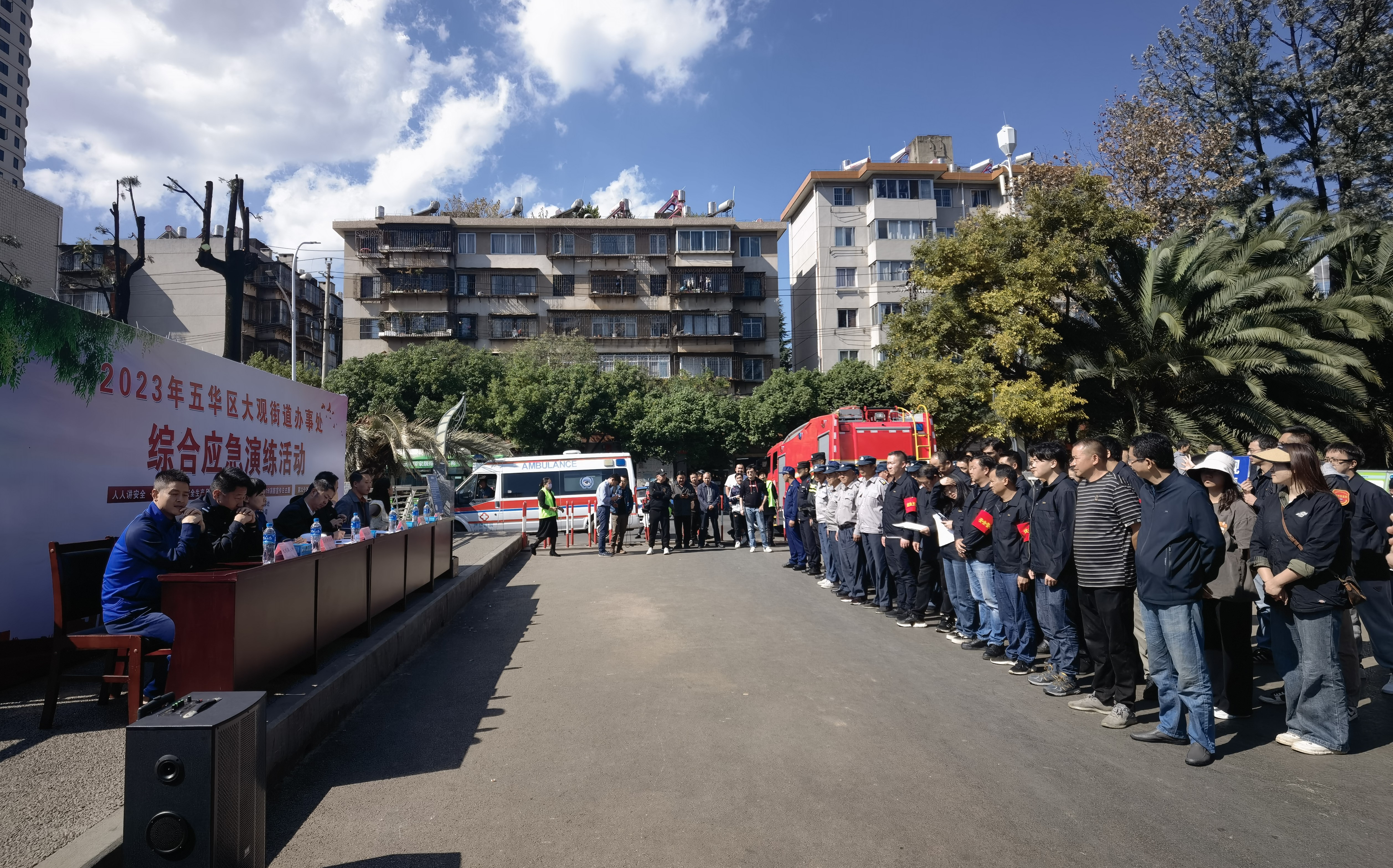 五華區(qū)住建局、應(yīng)急管理局、消防救援大隊(duì)和大觀街道辦事處、派出所、昊祥注冊(cè)安全工程師事務(wù)所等單位在大觀篆新農(nóng)貿(mào)市場(chǎng)開(kāi)展綜合應(yīng)急演練。各相關(guān)單位負(fù)責(zé)人、現(xiàn)場(chǎng)商戶共100余人參加。