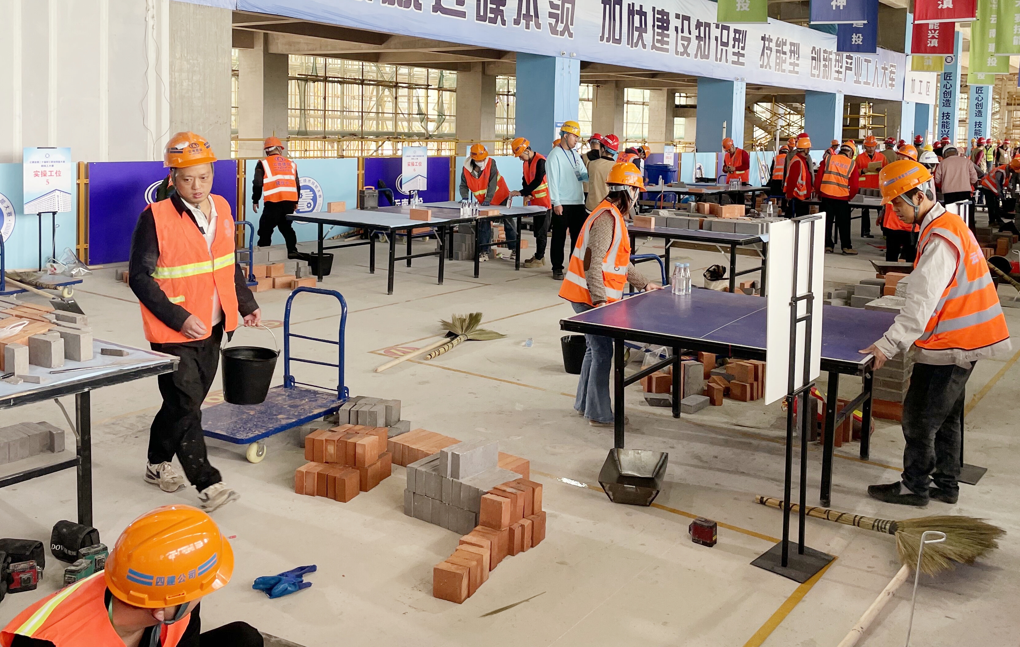 本次競賽以“匠心創(chuàng)造 技能興滇”為主題,分理論和實操兩部分,主要考核參賽選手對砌筑基礎(chǔ)、安全規(guī)范及勞動權(quán)益保護等理論知識的掌握程度和磚塊砌筑的實際操作水平。公司共選派1名農(nóng)民工代表參加,與來自全省各地的23支參賽隊伍共30名選手同場競技,展開激烈角逐。
