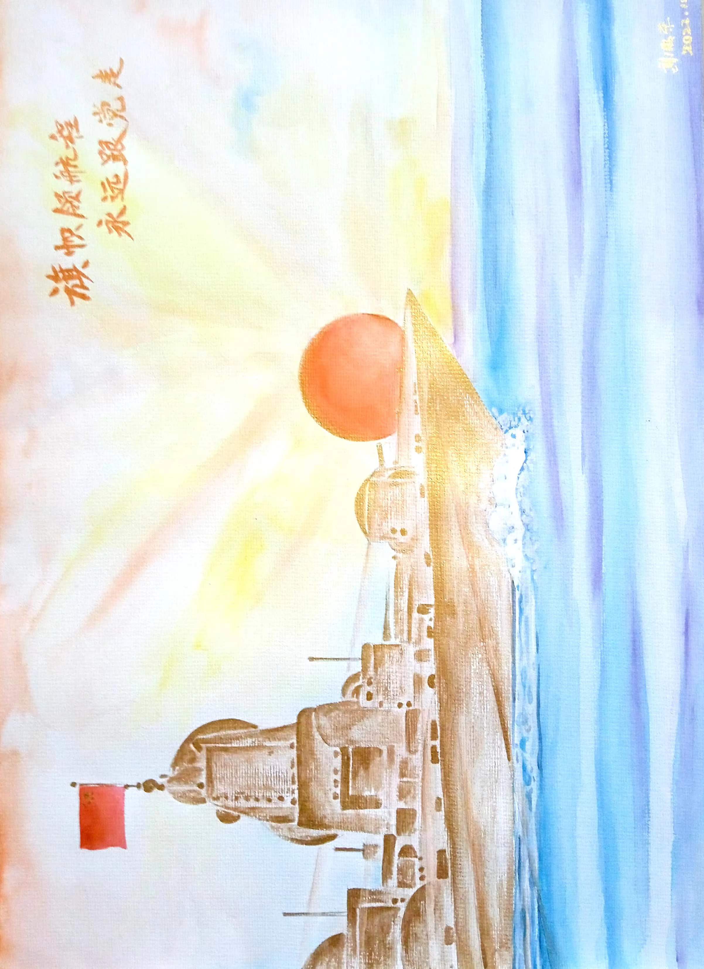 繪畫:旗幟領(lǐng)航程 永遠(yuǎn)跟黨走