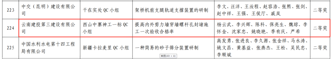 除此之外,中國(guó)建筑協(xié)會(huì)、云南省建筑業(yè)協(xié)會(huì)、云南省市政工程協(xié)會(huì)先后發(fā)布了2022年度優(yōu)秀QC成果獲獎(jiǎng)名單,公司17個(gè)QC成果均獲獎(jiǎng)。