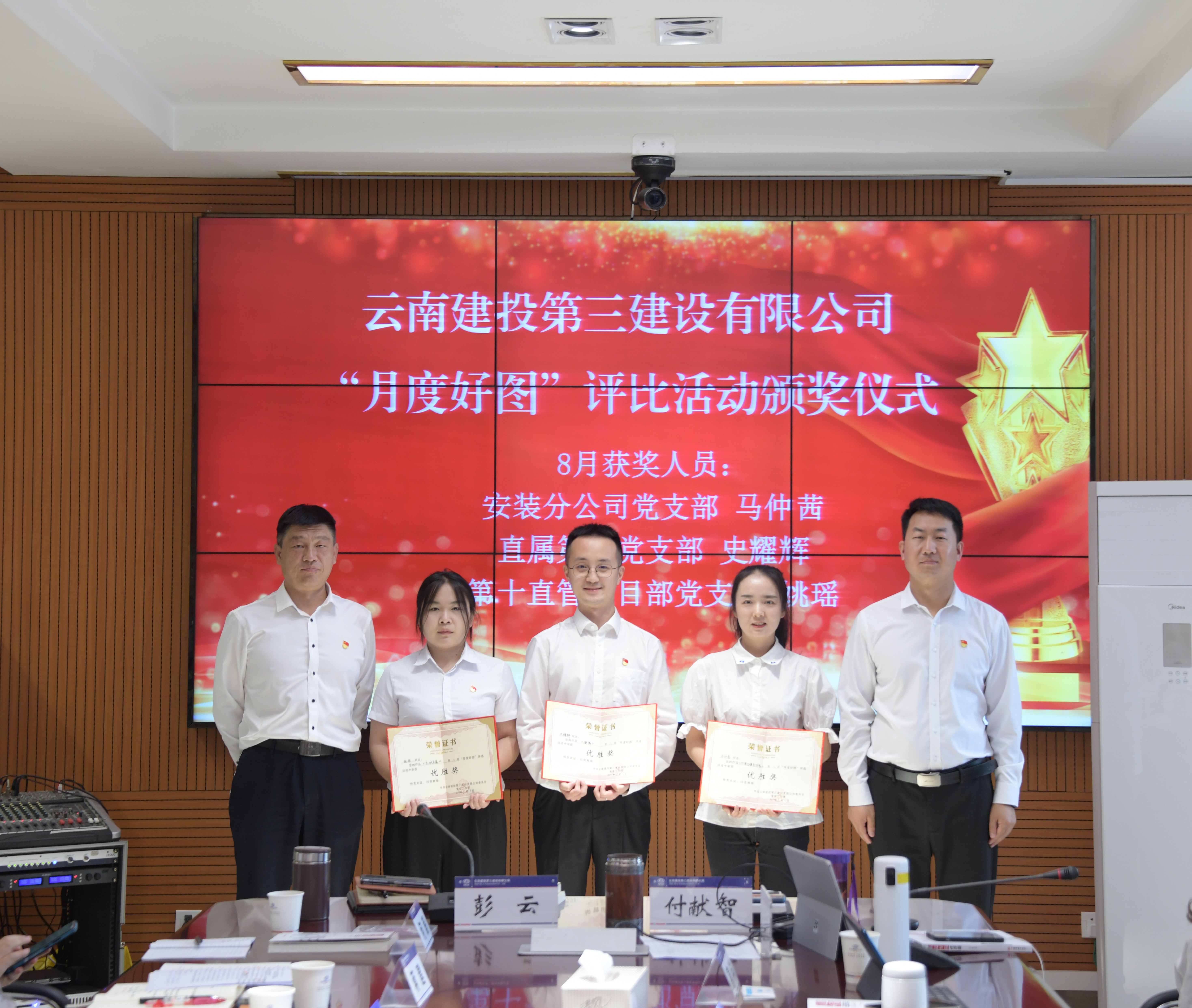活動最后,彭云、付獻智為公司微信公眾號“月度好圖”8月份獲獎?wù)哳C獎。