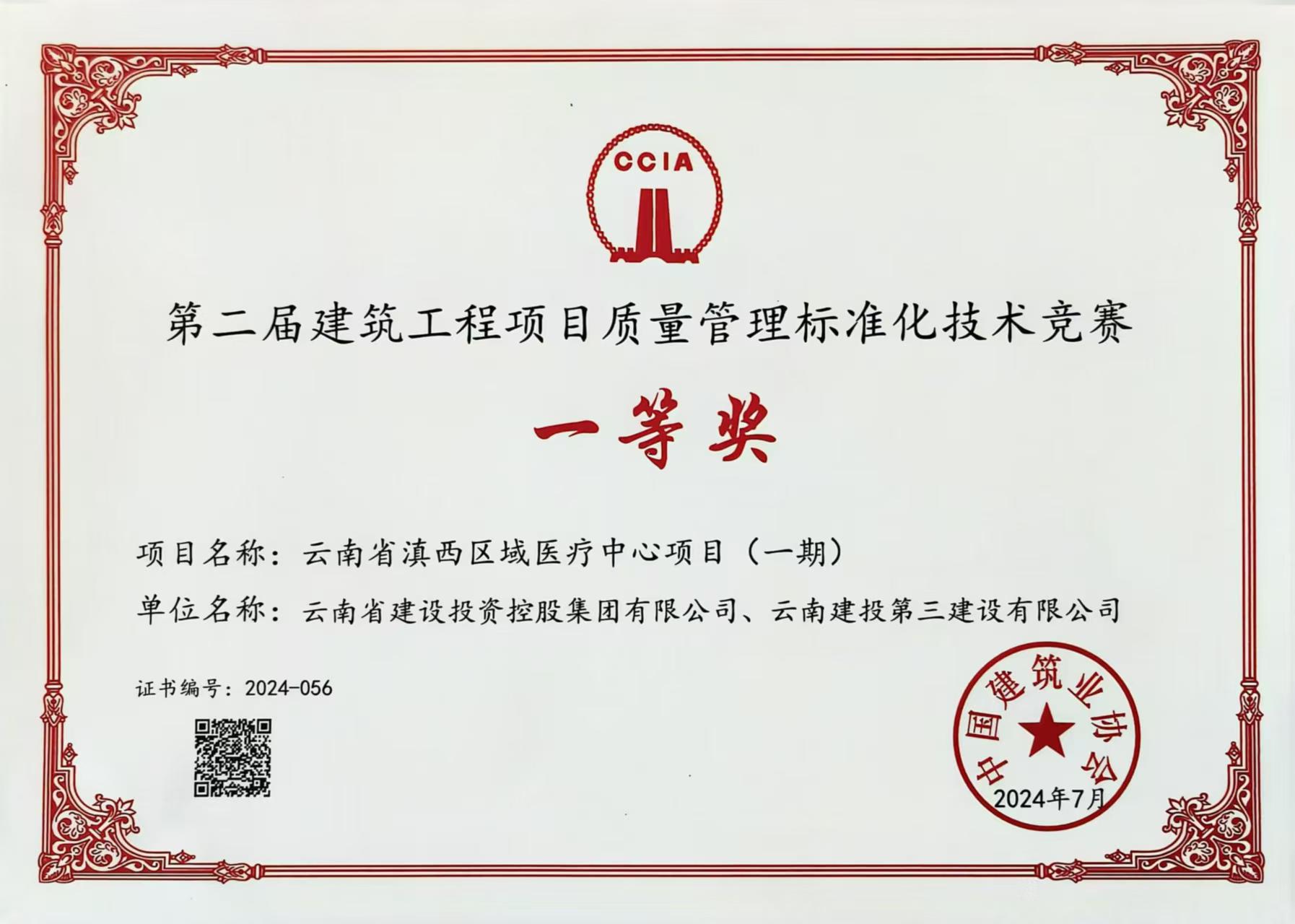 11月29日,由公司第九直管項(xiàng)目部承建的云南省滇西區(qū)域醫(yī)療中心建設(shè)項(xiàng)目(一期)斬獲中國(guó)建筑業(yè)協(xié)會(huì)“第二屆建筑工程項(xiàng)目質(zhì)量管理標(biāo)準(zhǔn)化技術(shù)競(jìng)賽一等獎(jiǎng)”。
