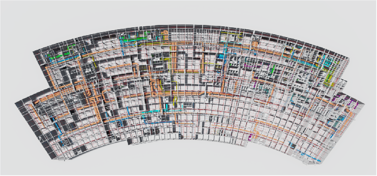 工程結(jié)構(gòu)抗震等級(jí)高,項(xiàng)目采用消能減震設(shè)計(jì),共計(jì)使用減隔震產(chǎn)品856套,阻尼器、橡膠支座支墩采用補(bǔ)償收縮砼,解決了原設(shè)計(jì)需二次補(bǔ)漿易造成的工期長(zhǎng)、砼開(kāi)裂等問(wèn)題。工程綜合管線布置施工難度大,機(jī)電安裝設(shè)備管線復(fù)雜,項(xiàng)目部通過(guò)BIM技術(shù)應(yīng)用、深化設(shè)計(jì)及精細(xì)管理,打造了安裝板塊的精品工程。