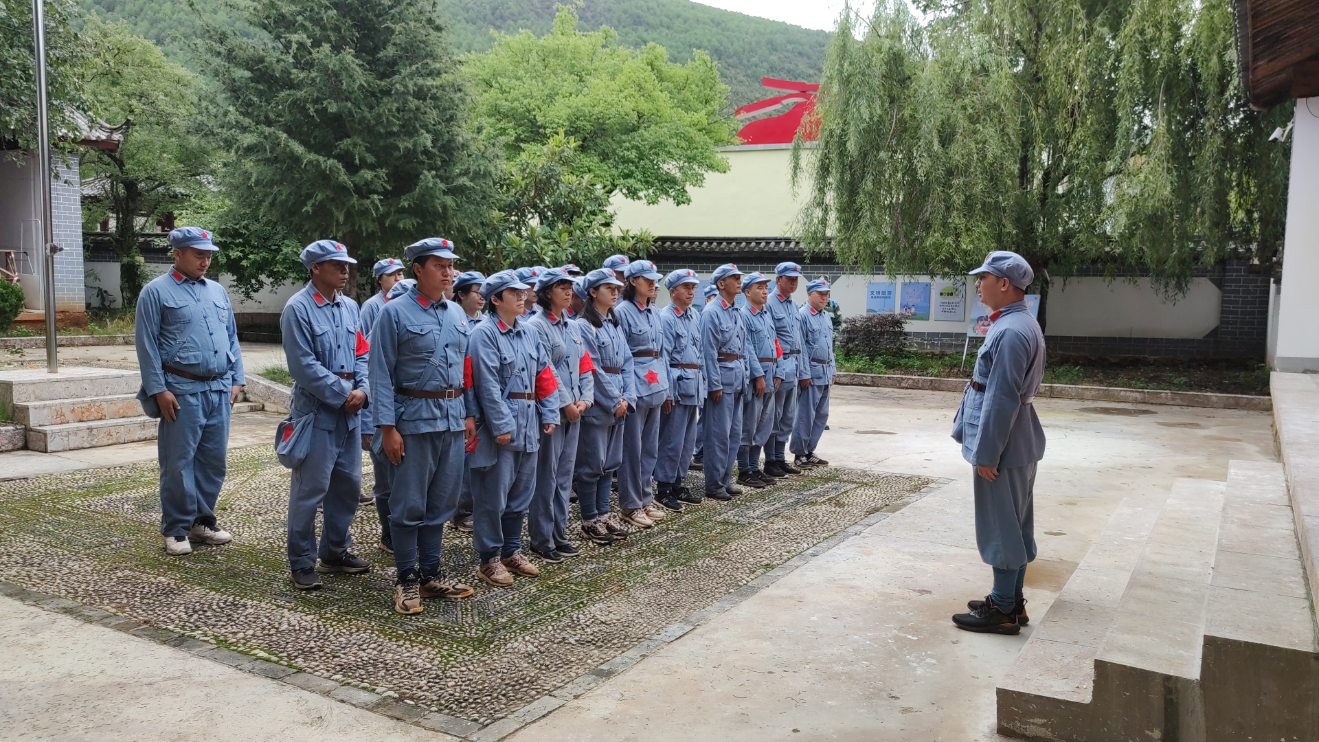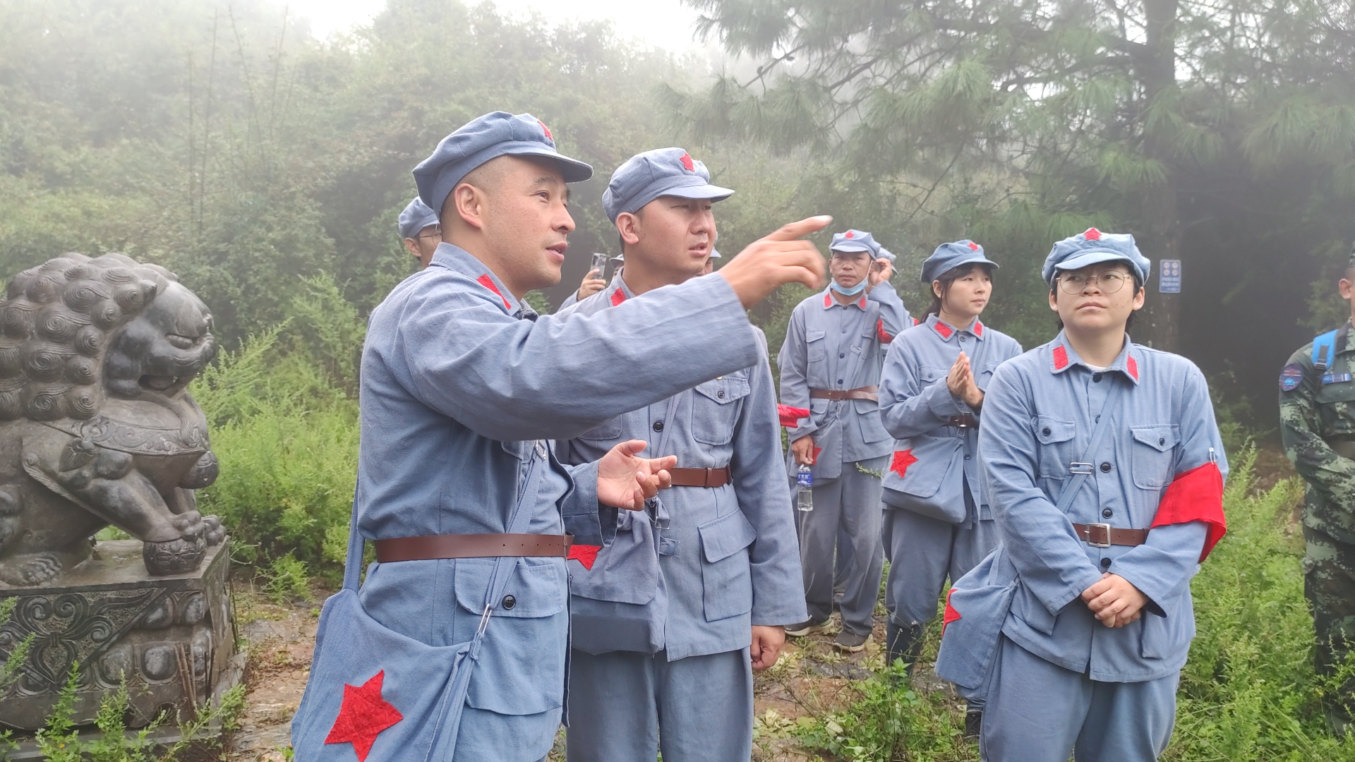 活動(dòng)中,黨員同志們身著“紅軍裝”,整齊列隊(duì),伴隨著綿綿細(xì)雨,沿著當(dāng)年紅二、六軍團(tuán)長(zhǎng)征途經(jīng)麗江的路線,開(kāi)啟“重走長(zhǎng)征路”之旅。歷經(jīng)兩個(gè)半小時(shí),大家翻山越嶺、穿越叢林,從西關(guān)村行至木家橋,并在途中進(jìn)行了空襲演練、搶救“傷員”、制作擔(dān)架、轉(zhuǎn)運(yùn)“傷員”、制作“紅軍餐”等實(shí)踐模擬活動(dòng),現(xiàn)場(chǎng)緊張激烈、精彩紛呈。下午,大家圍繞長(zhǎng)征有關(guān)的紅色歷史開(kāi)展“知識(shí)競(jìng)賽”“紅歌比賽”等活動(dòng),并齊聲朗誦了《七律 長(zhǎng)征》。隨后,大家一同到開(kāi)南研習(xí)所進(jìn)行參觀學(xué)習(xí),并重溫了入黨誓詞。