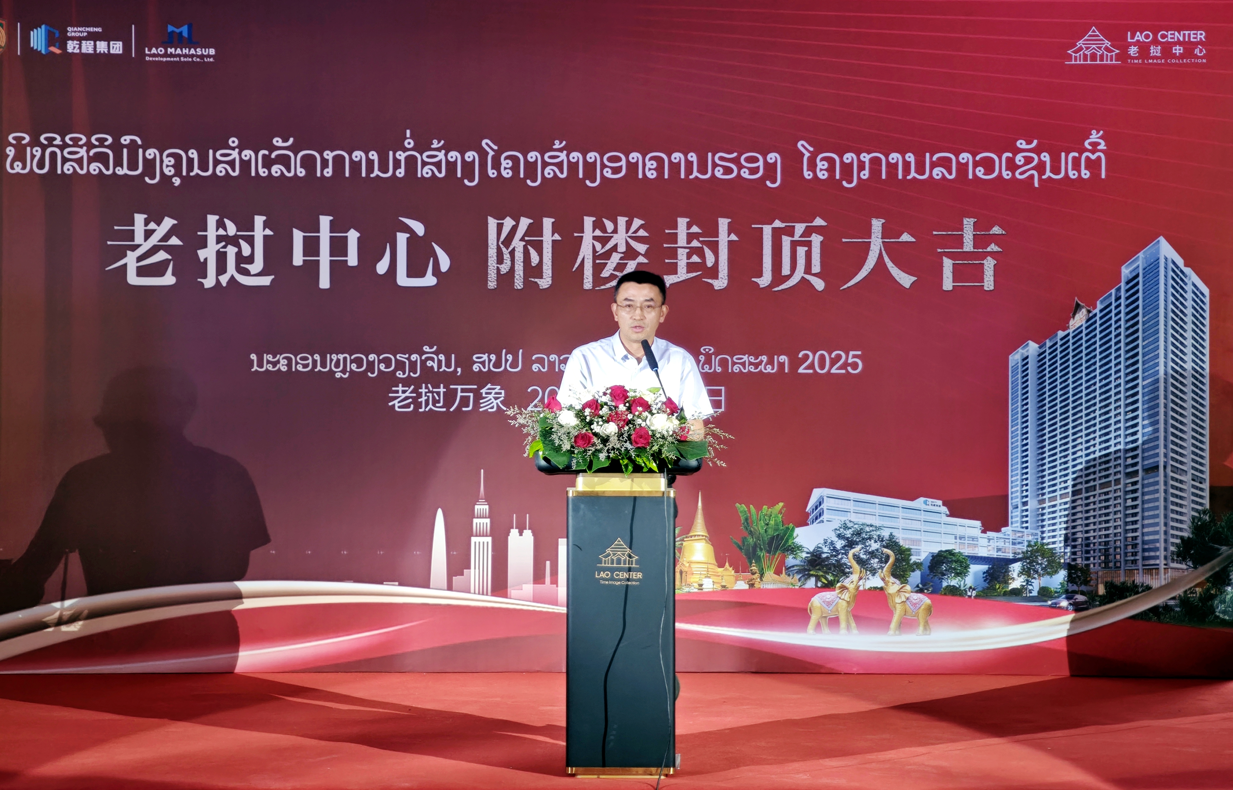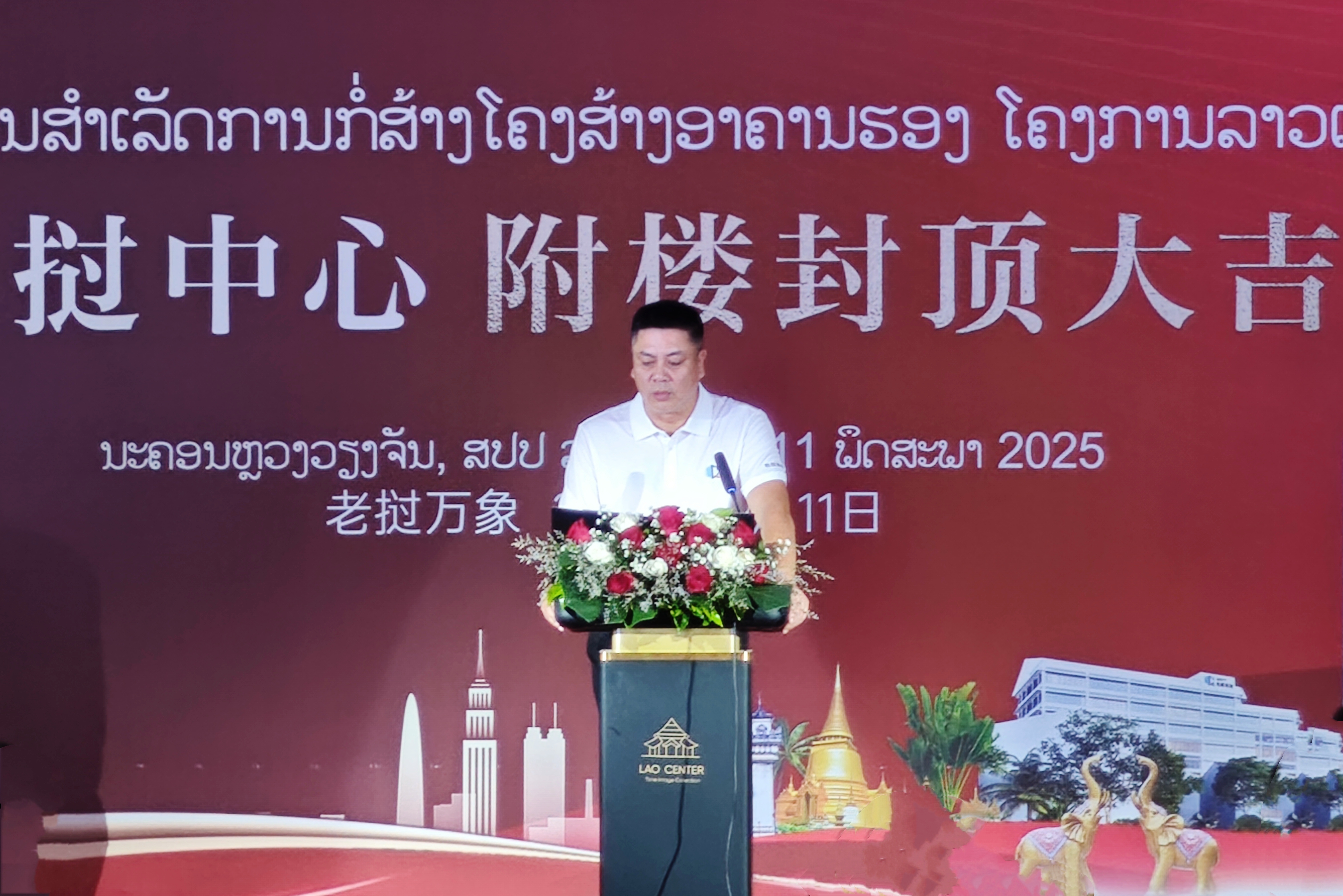 洪高明上臺致辭,向長期以來關(guān)心支持項(xiàng)目建設(shè)的老撾政府、社會各界以及全體建設(shè)者的辛苦付出表示衷心感謝。他指出,附樓的順利封頂,是項(xiàng)目建設(shè)歷程中的一個(gè)重要里程碑。老撾中心項(xiàng)目自開工建設(shè)以來,始終秉持高標(biāo)準(zhǔn)、高質(zhì)量的建設(shè)理念,克服了諸多困難與挑戰(zhàn),建成后將成為老撾城市新地標(biāo)之一,將進(jìn)一步促進(jìn)中老兩國在相關(guān)領(lǐng)域的合作與交流。
