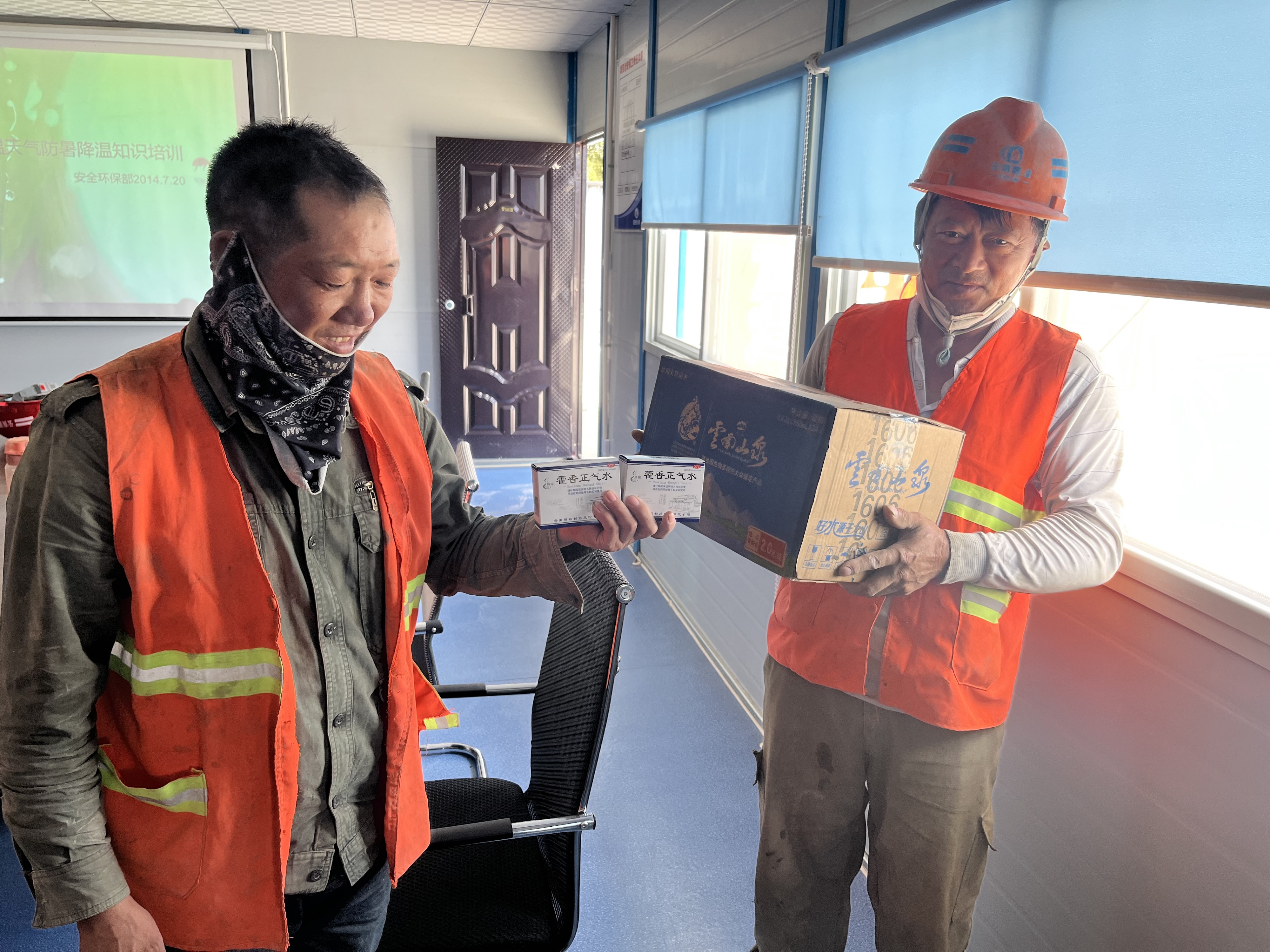 活動中,項目部首先為進(jìn)場班組人員進(jìn)行防暑知識宣講,詳細(xì)介紹夏季高溫注意事項、中暑的征兆、中暑的現(xiàn)場緊急救護(hù)等知識。同時,針對在高溫環(huán)境工作的農(nóng)民工友在面對不同類型情況下的中暑癥狀表現(xiàn),提出了科學(xué)的應(yīng)急處置辦法及建議。授課深入淺出、切合實際,農(nóng)民工友現(xiàn)場提問,交流熱烈,農(nóng)民工友的安全意識得到有效提升。隨后,項目部為農(nóng)民工友發(fā)放了藿香正氣水、礦泉水等防暑降溫用品,并結(jié)合現(xiàn)場生產(chǎn)實際,與班組管理人員溝通協(xié)商,對農(nóng)民工友作業(yè)時間進(jìn)行合理化調(diào)整,妥善安排休息時間,避免高溫時段。下一步,項目部將配足防暑降溫用品,實施有效安全管控,做好后勤服務(wù)保障,力爭為一線員工和廣大農(nóng)民工提供一個舒適、安全的工作生活環(huán)境,確保項目生產(chǎn)工作安全有序推進(jìn)。