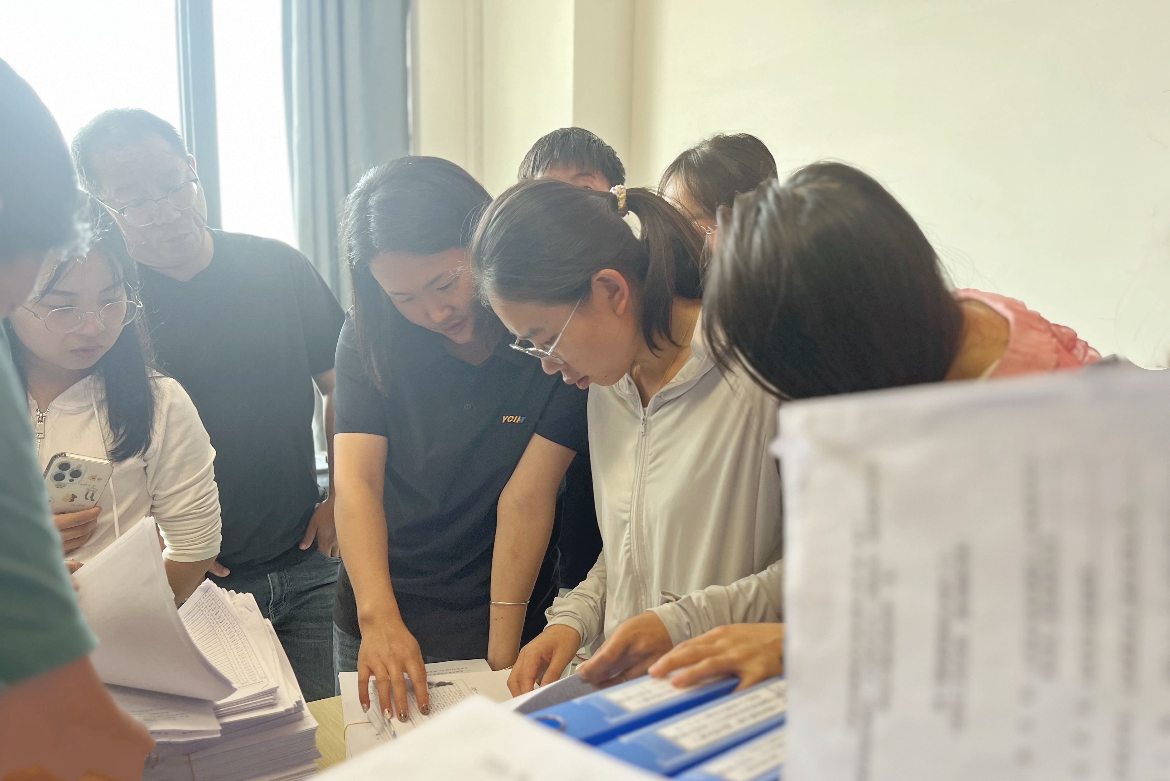 各二級單位參會人員依次翻閱臺賬資料,過程中圍繞工人入場、考勤打卡、工資支付、成本管理協(xié)同配合等實名制管理經(jīng)驗進行交流分享。