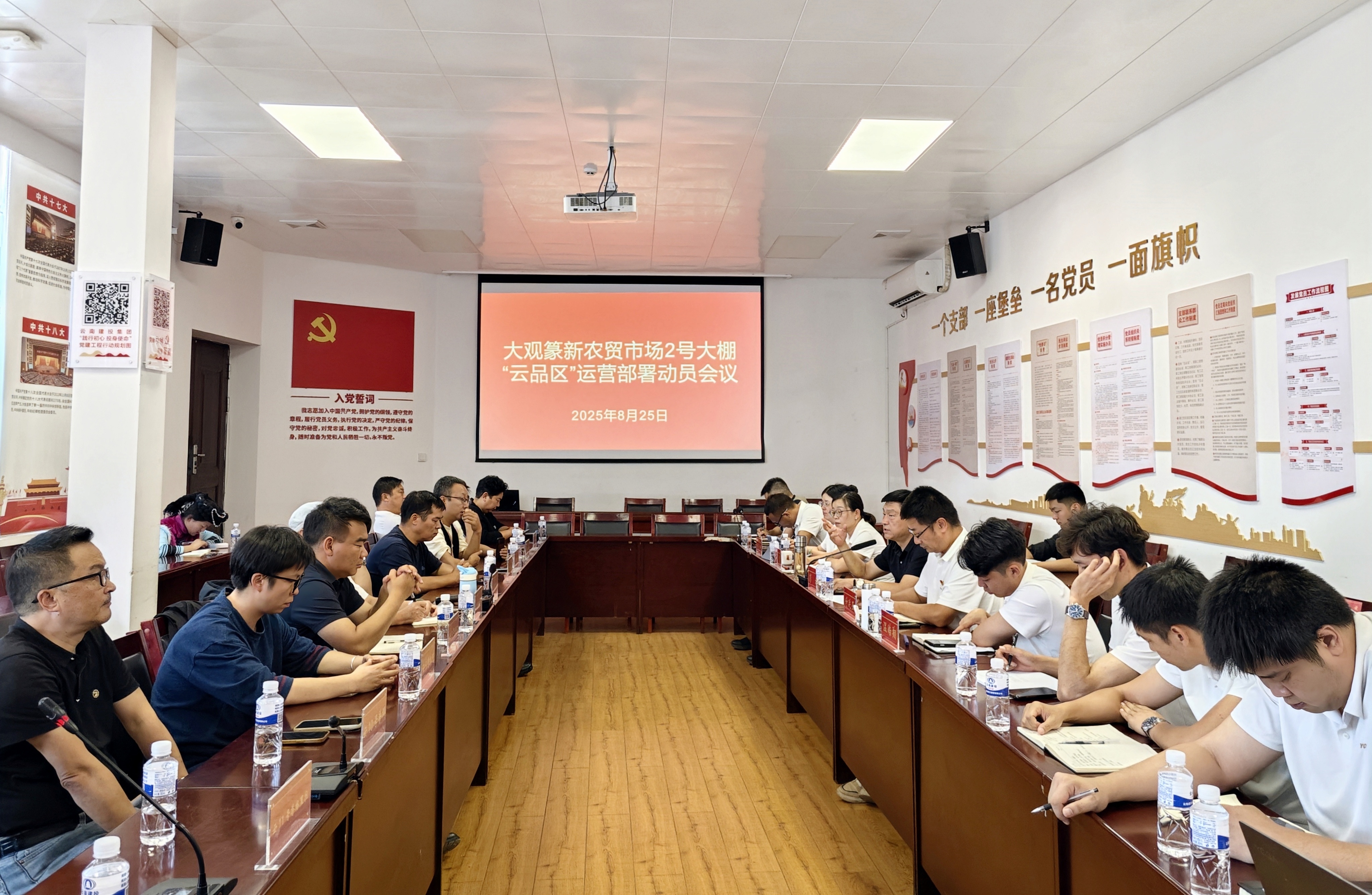 8月25日下午,公司組織召開大觀篆新農貿市場2號大棚“云品區(qū)”運營部署動員會,公司黨委書記、董事長彭云出席會議,篆新公司全體班子成員、云品區(qū)和商戶管理人員參加。