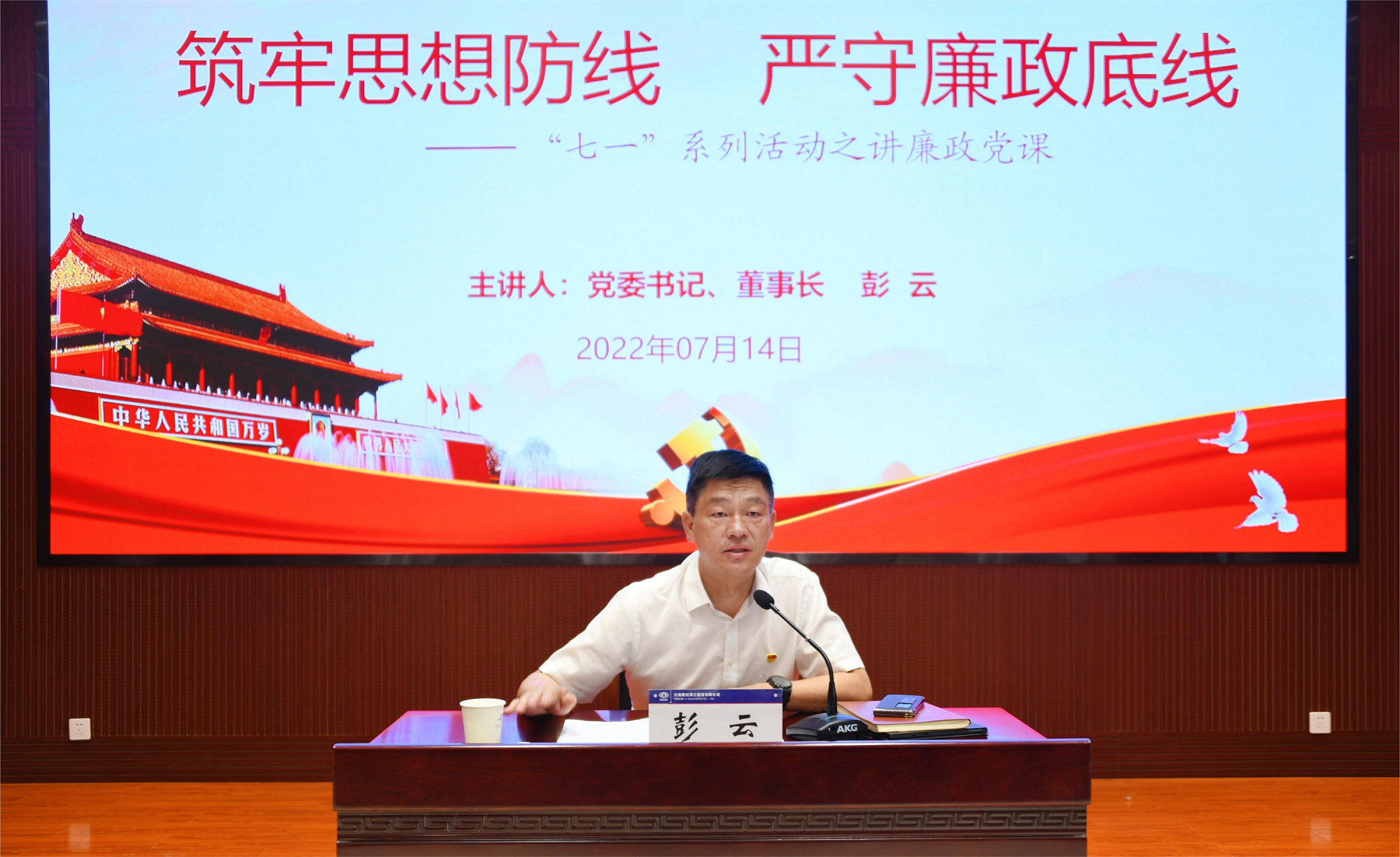 7月14日,公司黨委書記、董事長彭云在一號會議室講授了題為“筑牢思想防線 嚴(yán)守廉政底線”的廉政黨課,黨委委員、紀(jì)委書記付獻(xiàn)智,各職能部門負(fù)責(zé)人,各黨支部書記、紀(jì)檢委員、紀(jì)檢干事及黨委工作部、紀(jì)檢監(jiān)察部相關(guān)人員共75人參加。