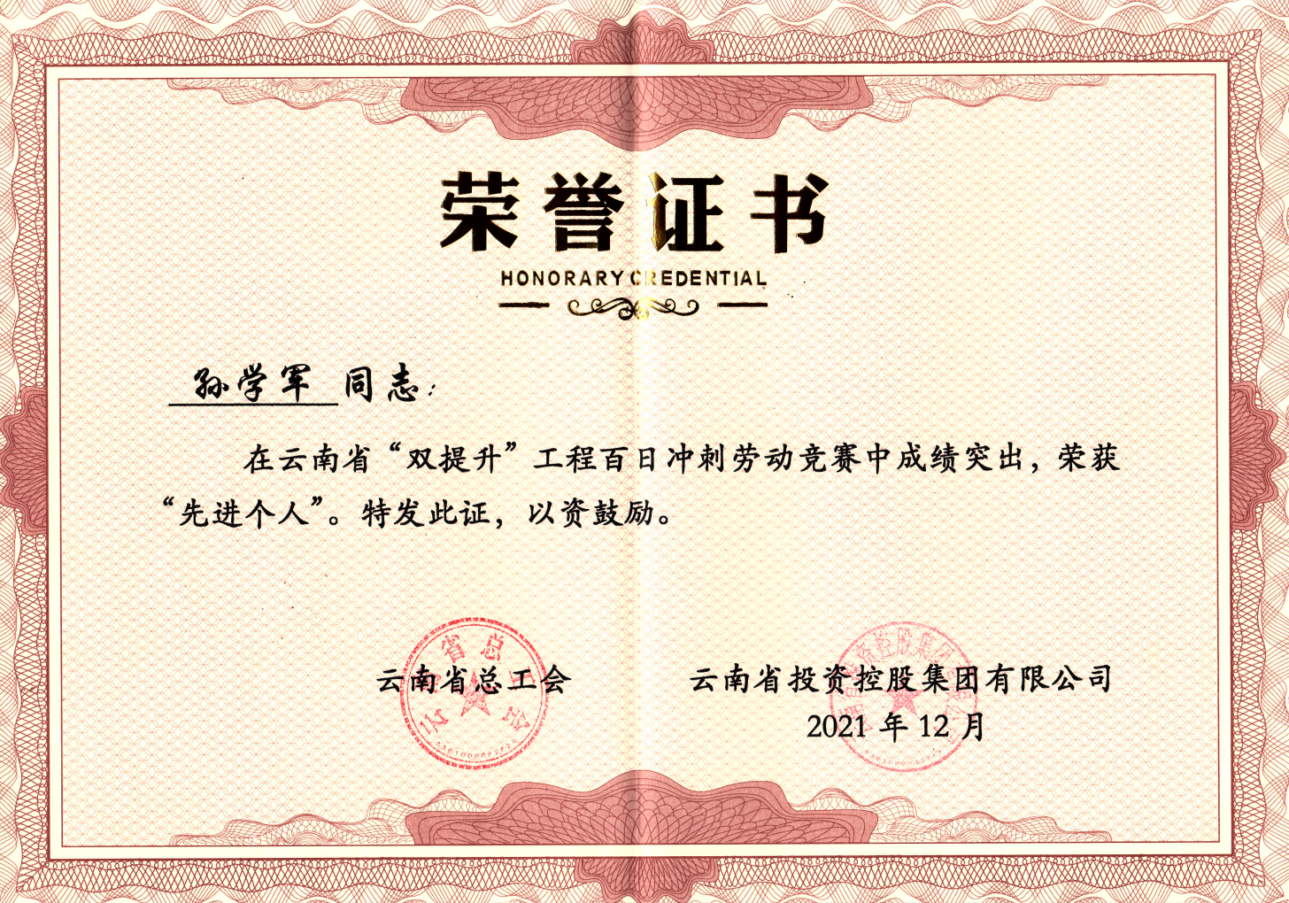 7月12日,由云南省總工會、云南省投資控股集團有限公司組織的云南省“雙提升”工程百日沖刺勞動競賽總結表彰會在云投集團召開,省總工會、省衛(wèi)健委及相關部門負責人參加。公司第十七直管項目部承建的麗江市傳染病醫(yī)院建設項目榮獲表彰,公司黨委書記、董事長彭云,黨委委員、副總經(jīng)理陳波,第十七直管項目部支部副書記、工會主席高磊,副經(jīng)理孫學軍榮獲“先進個人”稱號。