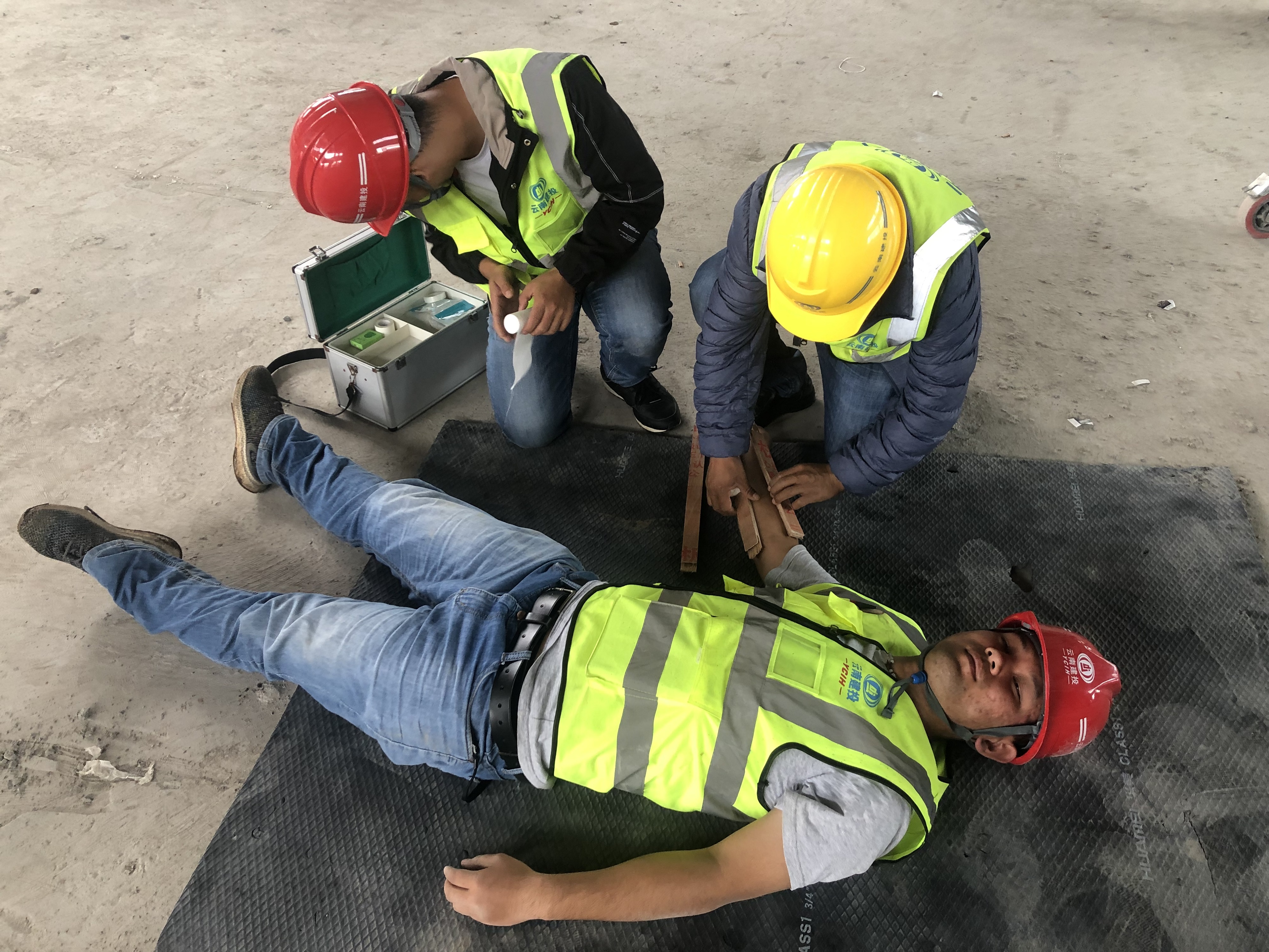 演練開始,一名員工觸電倒地,施工人員發(fā)現(xiàn)后立即用木棍挑開電纜并上報項目部,項目部得知后迅速啟動觸電急救事故應急預案并向公司安全管理部報告,事故搶救組、警戒聯(lián)絡組、醫(yī)療救護組、后勤保障組快速行動,在最短的時間內(nèi)落實斷電、拉警戒線、現(xiàn)場救護、送往醫(yī)院等一系列工作。