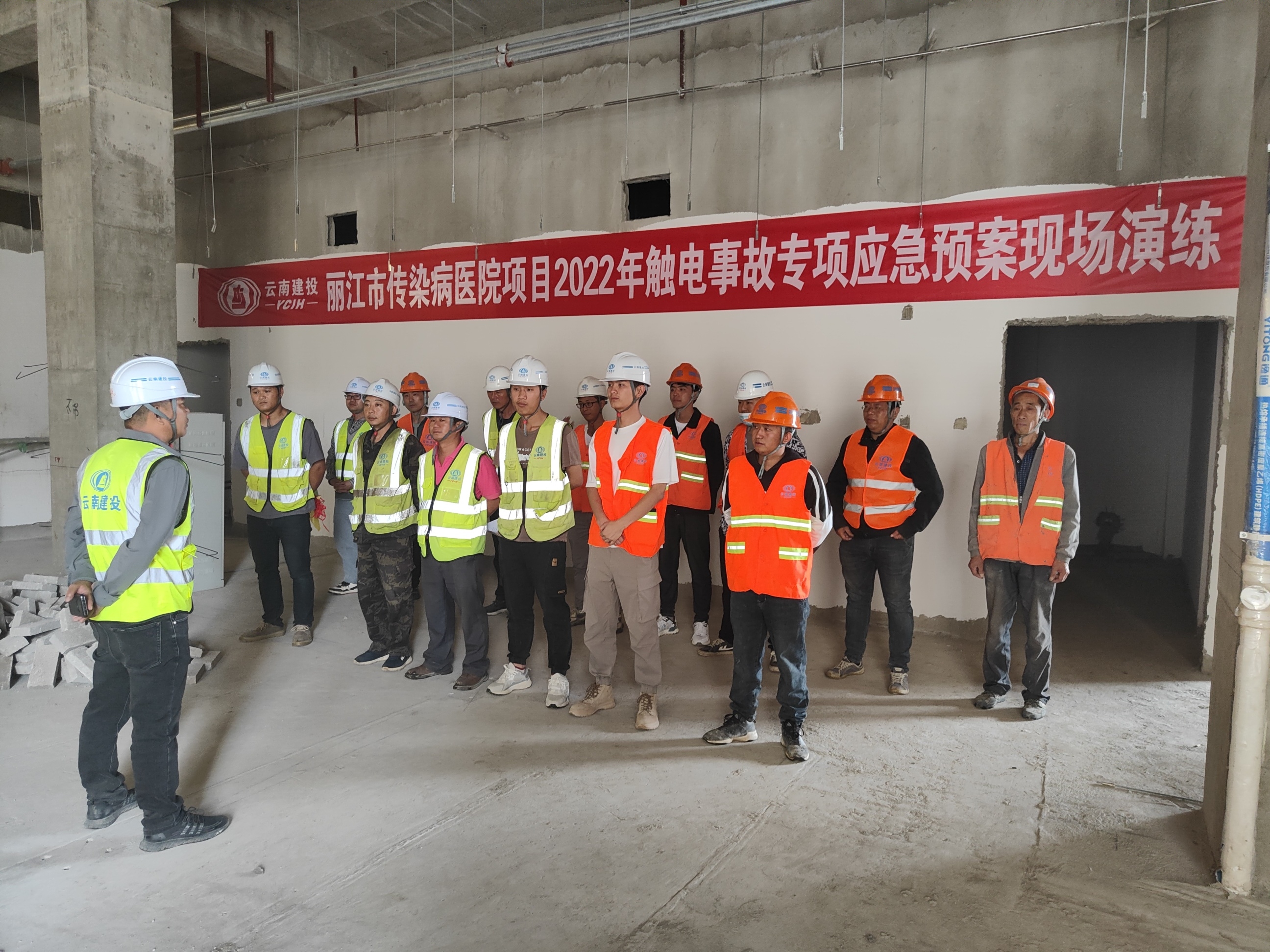 6月12日,第十七直管項目部在麗江市傳染病醫(yī)院建設項目開展了觸電急救事故應急預案演練,各參建單位共15人參加。
