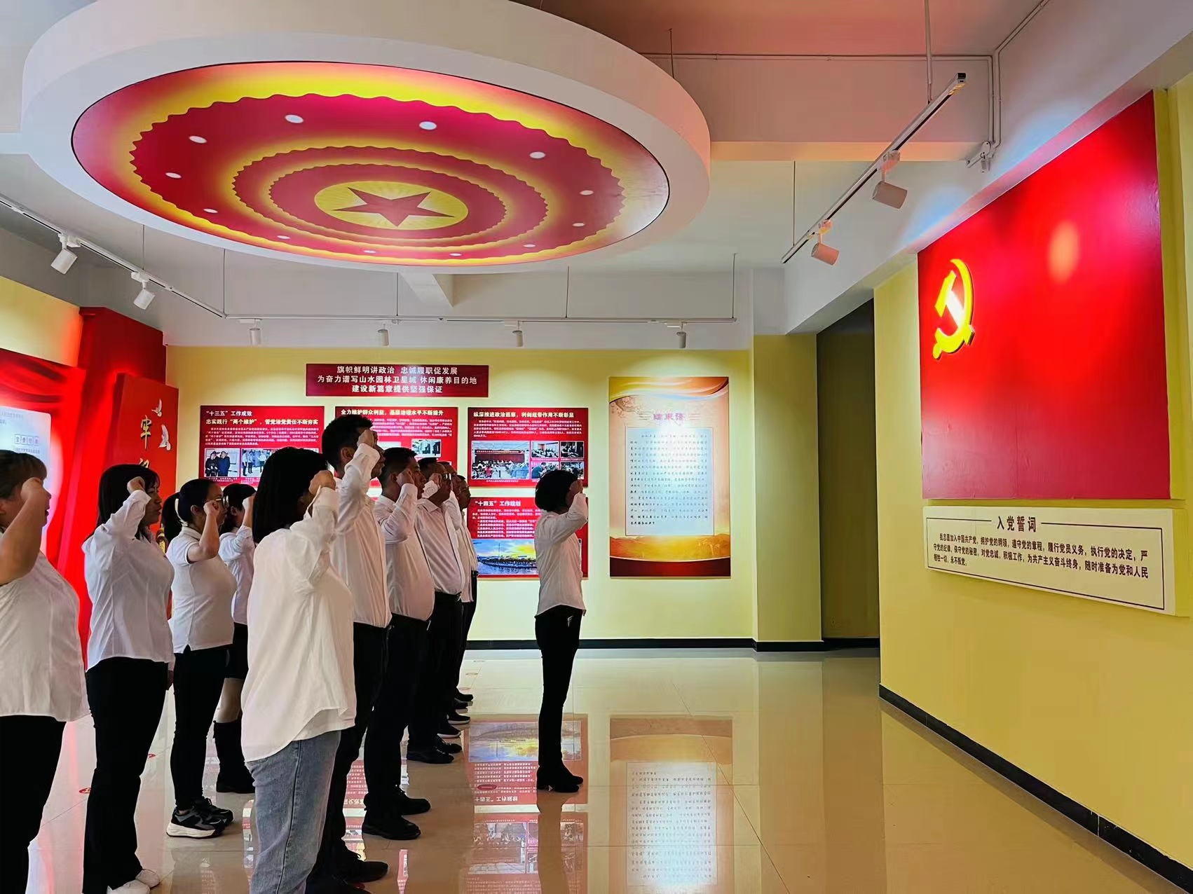 小松園戰(zhàn)斗紀(jì)念館的碑石上鐫刻著毛澤東的名言“長征是宣言書,長征是宣傳隊,長征是播種機(jī)”,黨支部書記深刻剖析名言中蘊(yùn)含的長征精神,帶領(lǐng)大家向革命烈士默哀、鞠躬、獻(xiàn)花。隨后,全體黨員面對鮮紅黨旗重溫入黨誓詞,再次許下對黨絕對忠誠的錚錚誓言。最后大家圍坐在展廳內(nèi),認(rèn)真聆聽紀(jì)念館館長講述紅軍二、六軍團(tuán)如何在富民小松園利用有利地形多次打退滇軍軍閥進(jìn)攻,最終在生死時刻順利跳出包圍圈,跨過云南往陜西行進(jìn)的歷史革命故事。